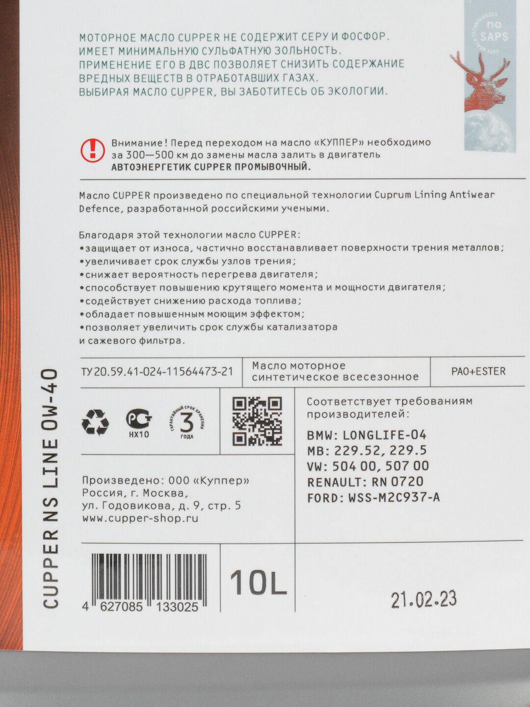 Масло моторное CUPPER 0W40 (10 л) интересное: