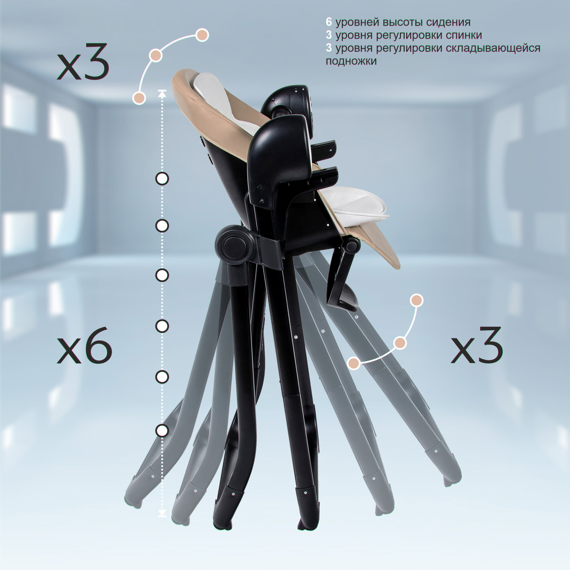 | Регулировка | высоты стульчика / наклона спинки / положения подножки |