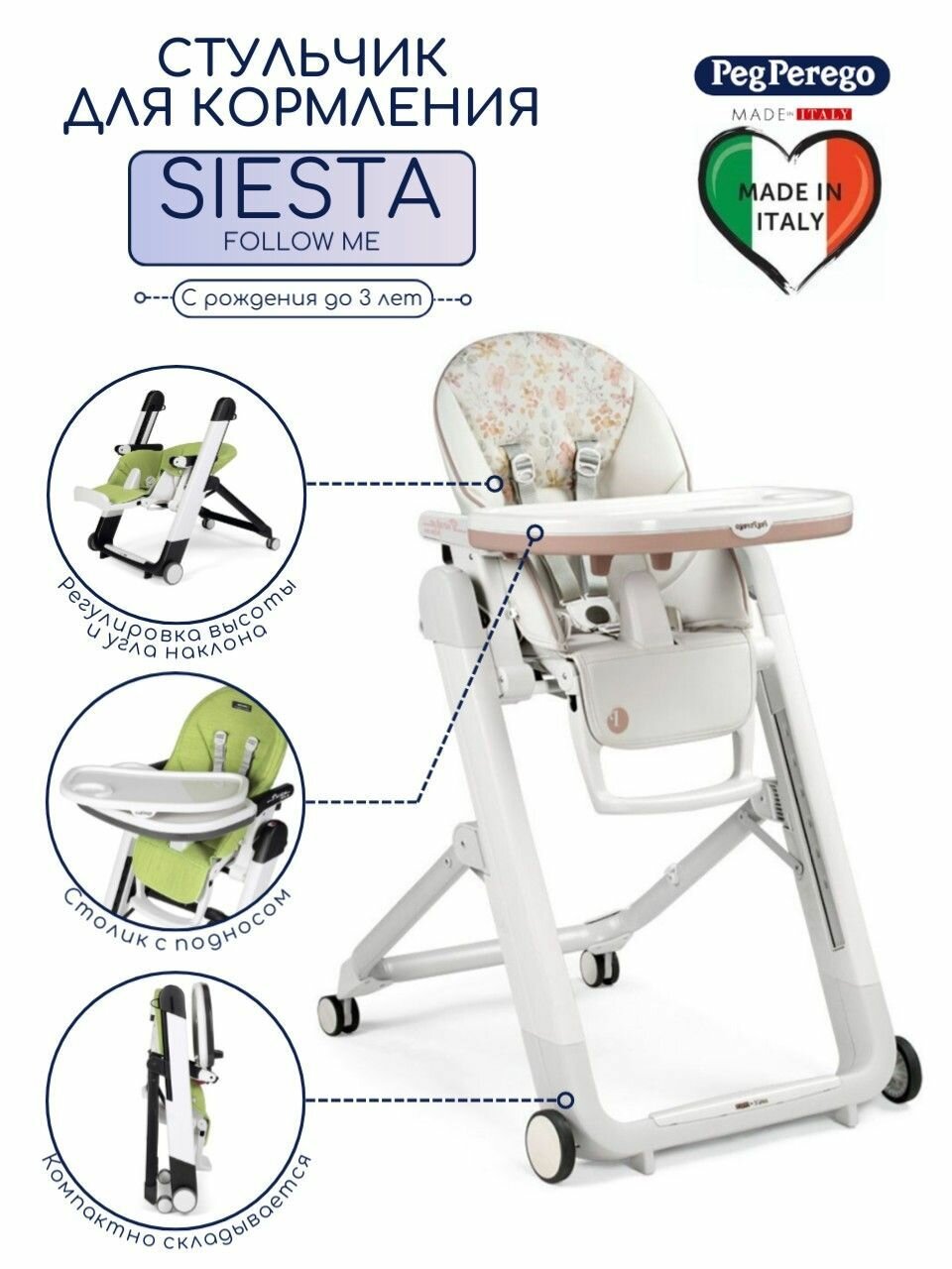 Стульчик для кормления Peg Perego Prima Pappa Follow Me (Mon Amour)