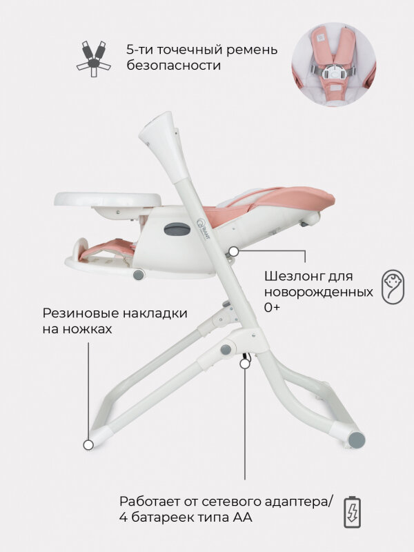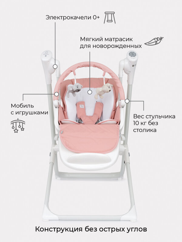 Купить Стульчик для кормления качели Rant MELODY RS201 с 6 месяцев Cloud Pink