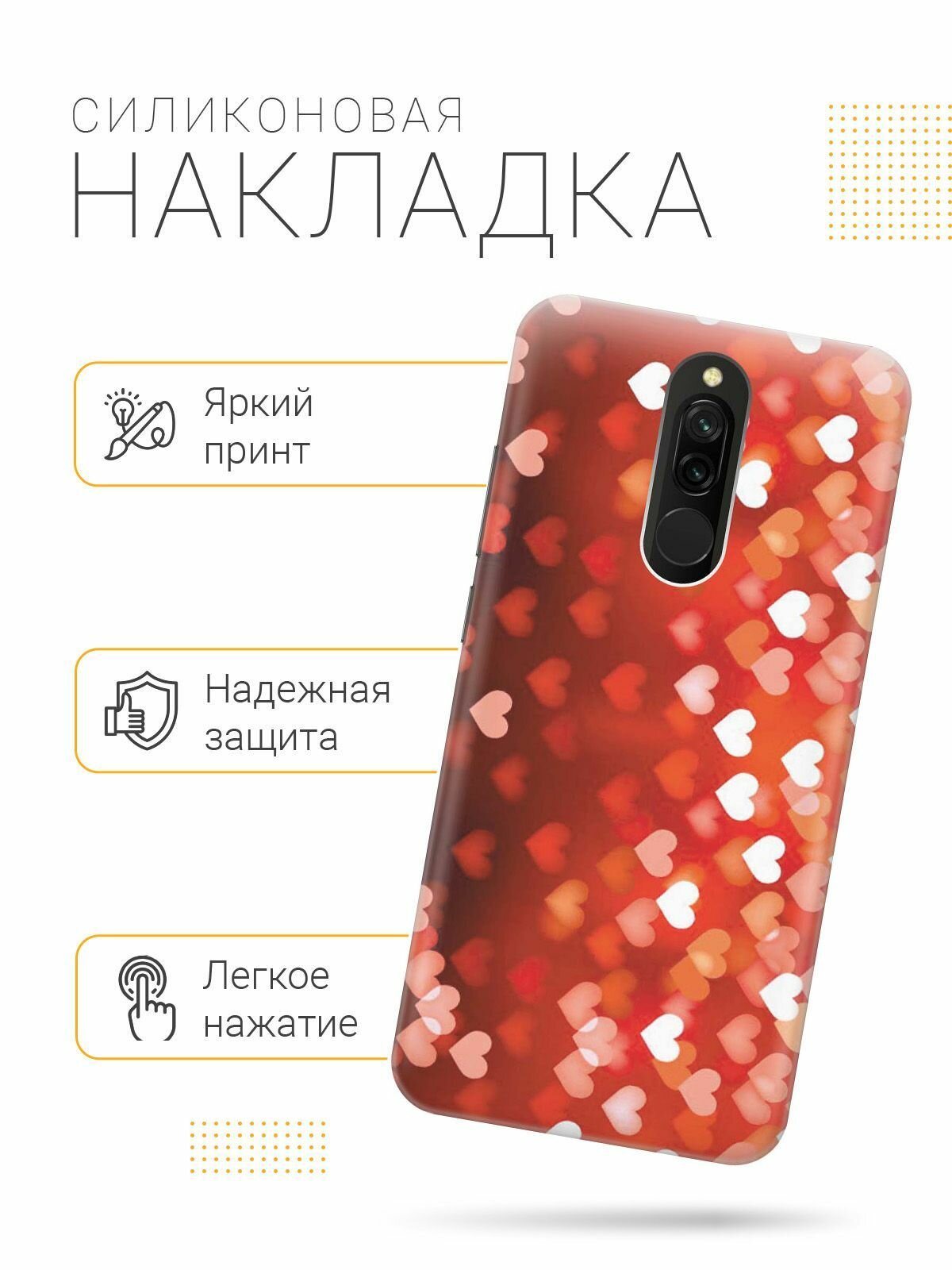 Ультратонкий силиконовый чехол-накладка для Xiaomi Redmi 8 с принтом "Бокэ из красных сердечек" интересное: