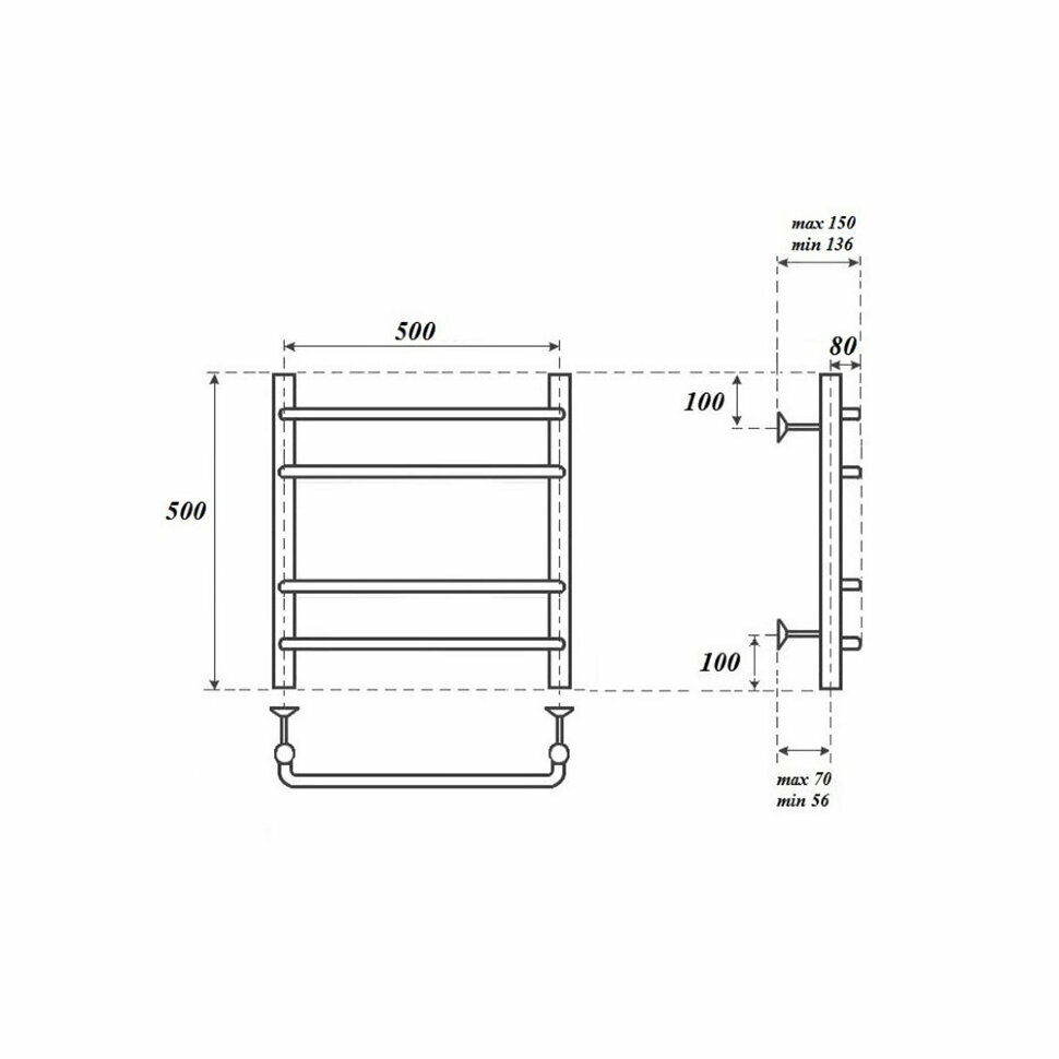 Водяной полотенцесушитель Energy Ideal 800x500