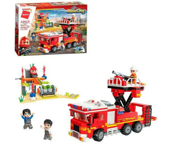 Конструктор Qman Пожарная машина 539 детали, в коробке (FCJ0678161)