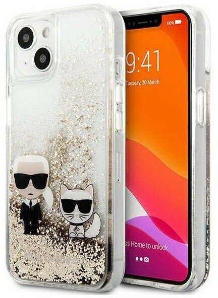 Чехол CG Mobile Karl Lagerfeld Liquid glitter Karl & Choupette Hard для iPhone 13, цвет Золотой (KLHCP13MGKCD)