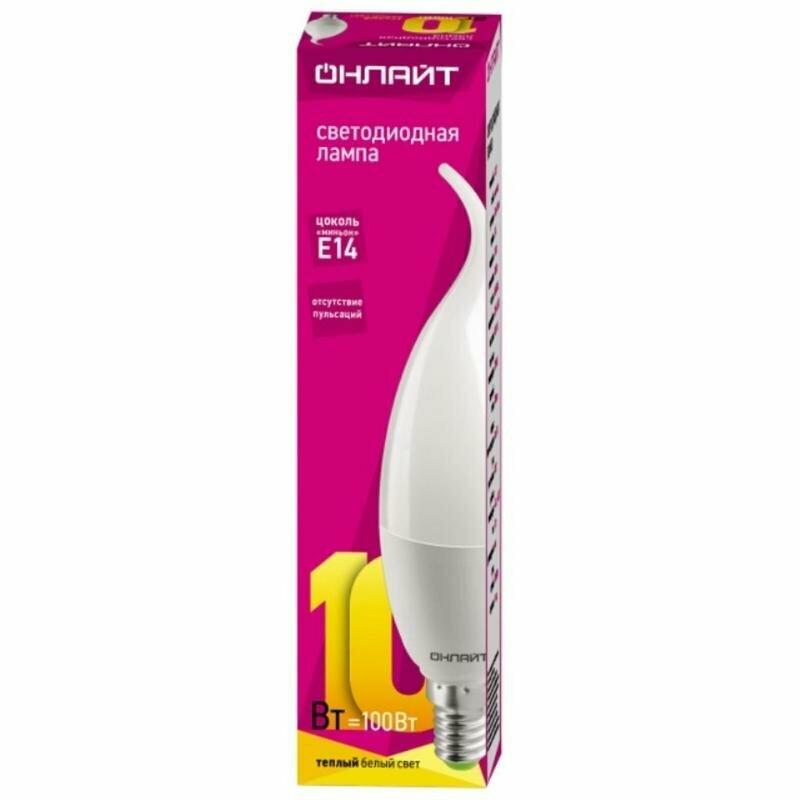 Светодиодная лампа свеча онлайт 61 962 OLL-FC37-10-230-2.7K-E14-FR, цена за 1 шт.