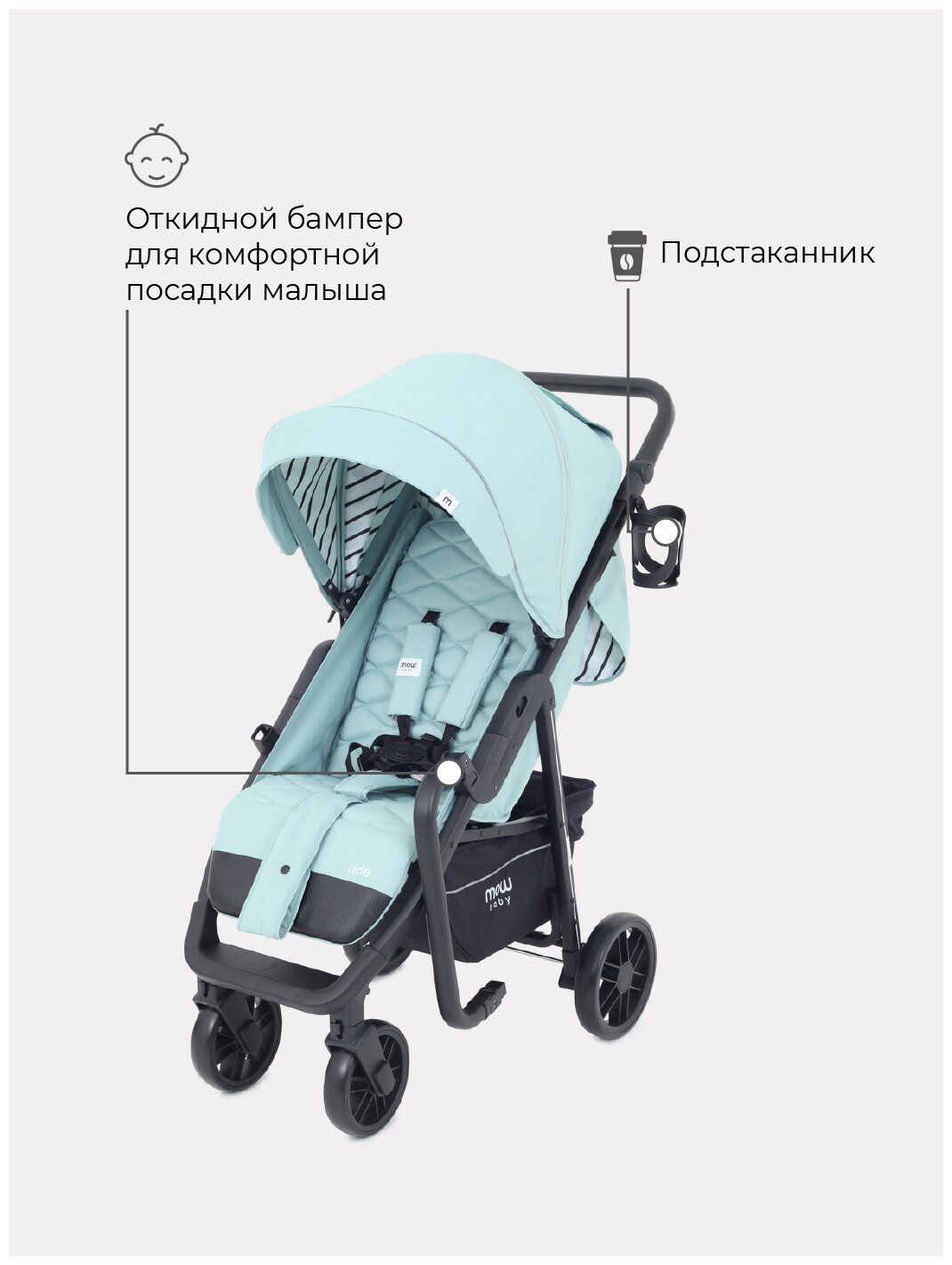 СохранитьКоляска прогулочная детская MOWBABY RIDE RA082, Mint интересное:
