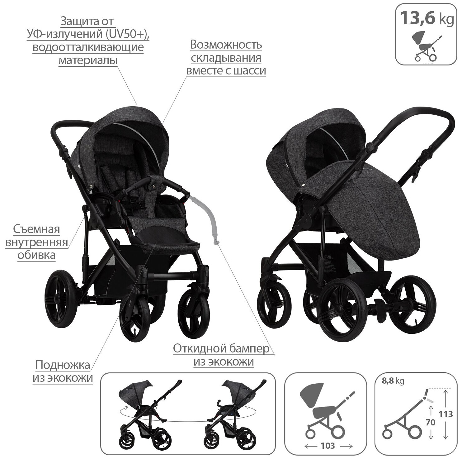 Универсальная коляска Bebetto Magnum Lux (2 в 1), 01/черная рама, цвет шасси: черный