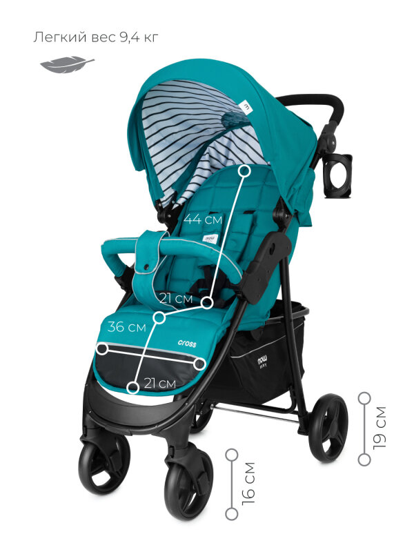 Прогулочная коляска MOWBABY Cross, mint, цвет шасси: черный