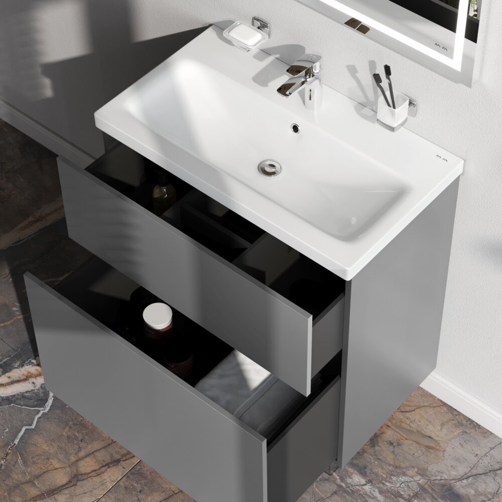 Тумба под раковину Am.Pm Gem M90FSX07522GM32, напольная, 75 см, 2 ящика push-to-open, графит матовый
