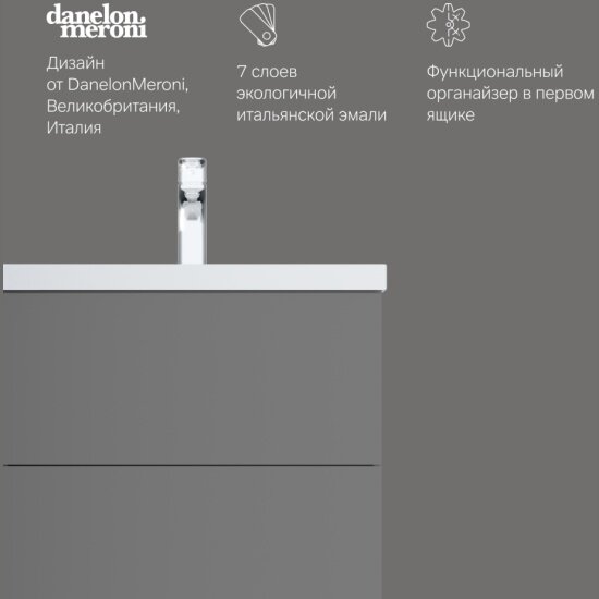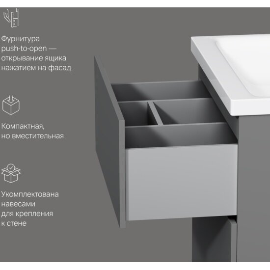 Тумба под раковину, напольная GEM M90FSX07522GM32 75 см, 2 ящика push-to-open, графит матовый