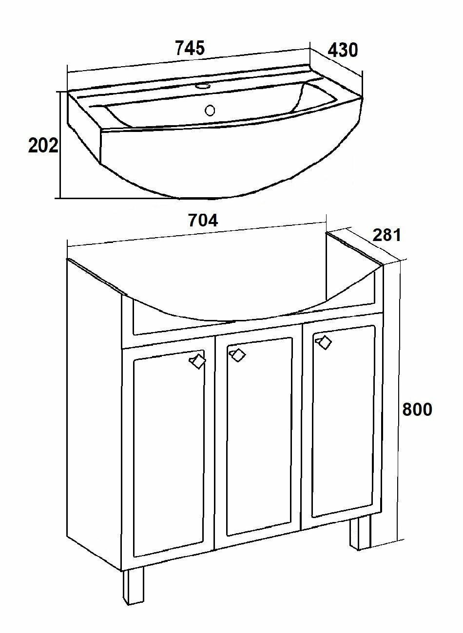 | Комплектация | тумба под раковину - 1 шт., ножки - 4 шт., ручки - 3 шт. |