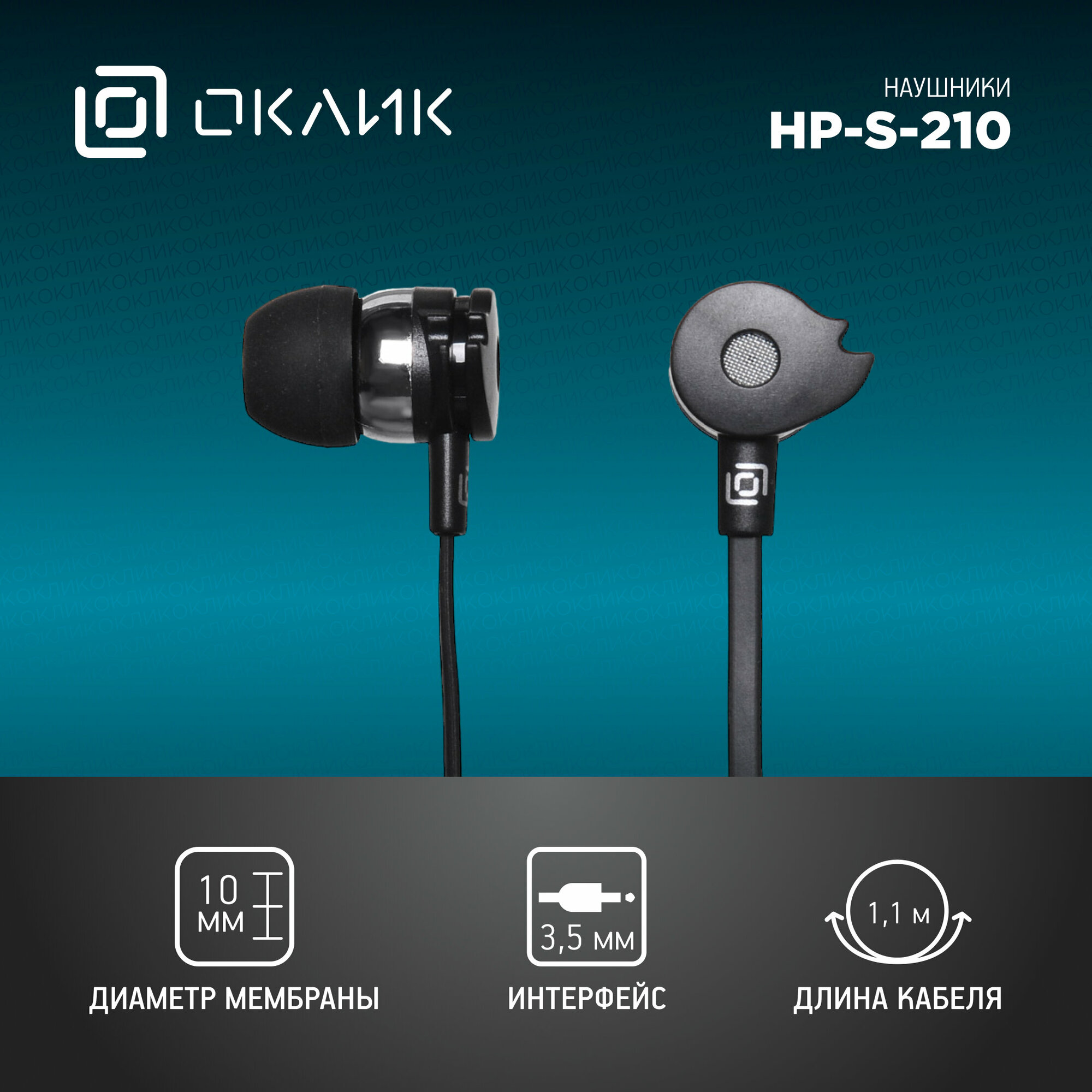 Наушники Oklick HS-S-210, 3.5 мм, вкладыши, черный [d1b]