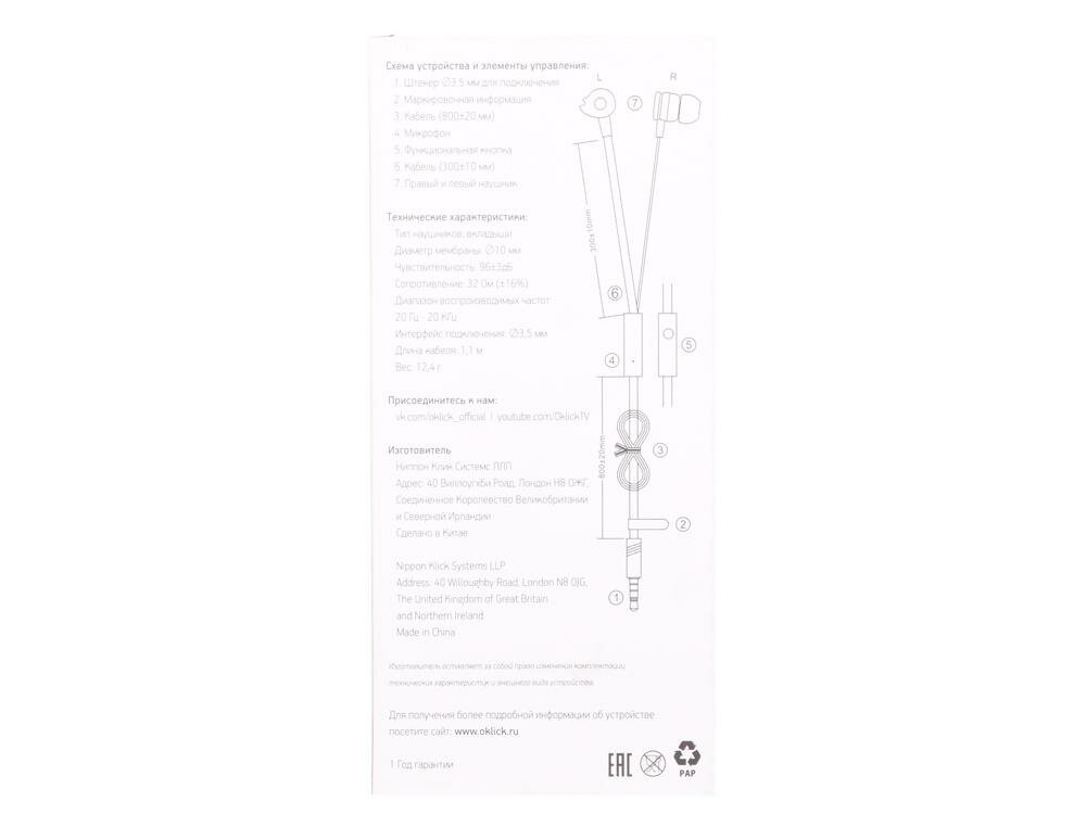 Гарнитура Oklick HS-S-210, 3.5 мм, вкладыши, черный [d1b]
