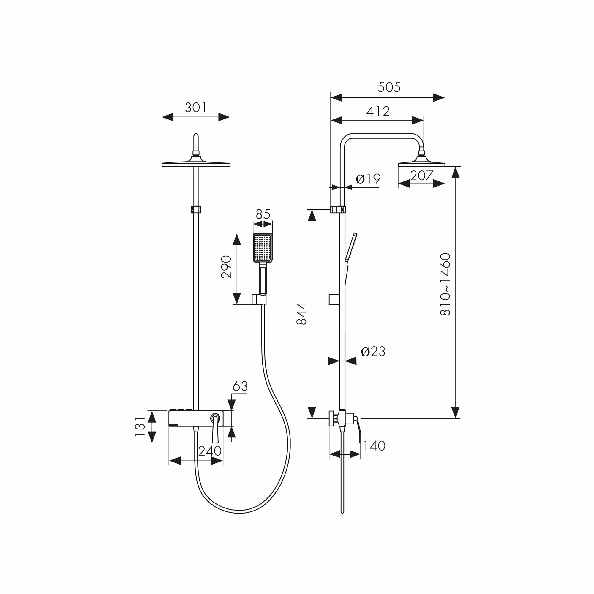 | Комплектация | Смеситель / верхний душ / ручная лейка / штанга / шланг для душа |