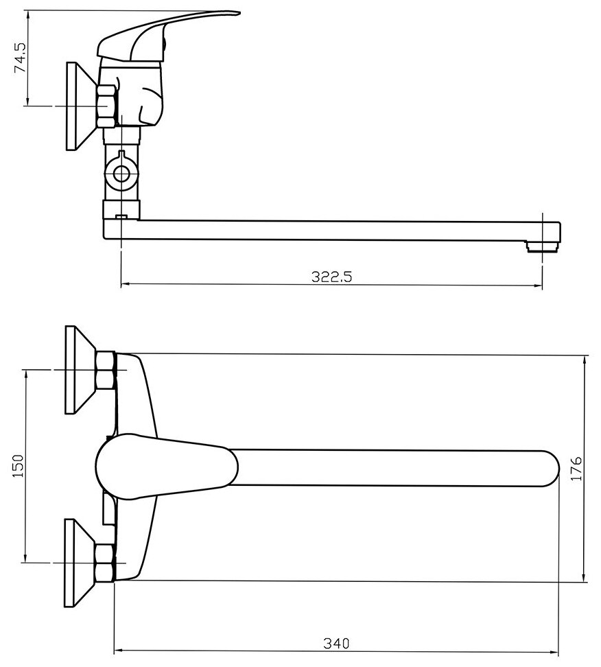 | Длина излива | 322 мм |