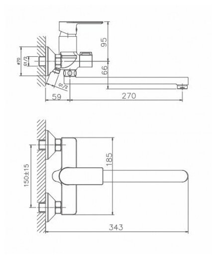 Смеситель для ванны Haiba HB22505, хром (хром / глянцевая)