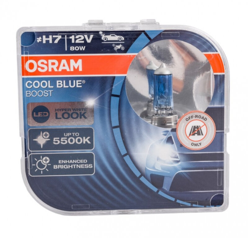 Лампа галогенная OSRAM H7 Cool Blue Boost +50% 12V 80W, 2шт.