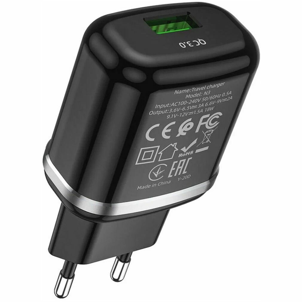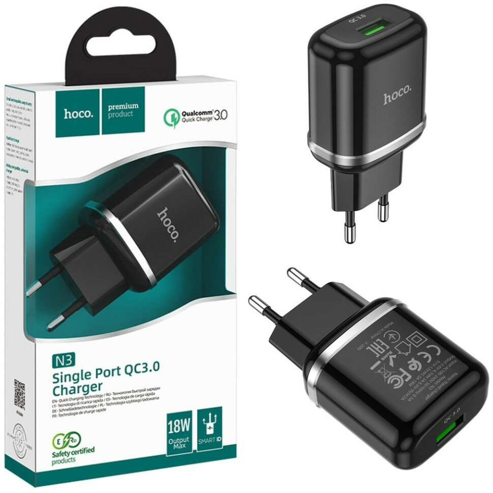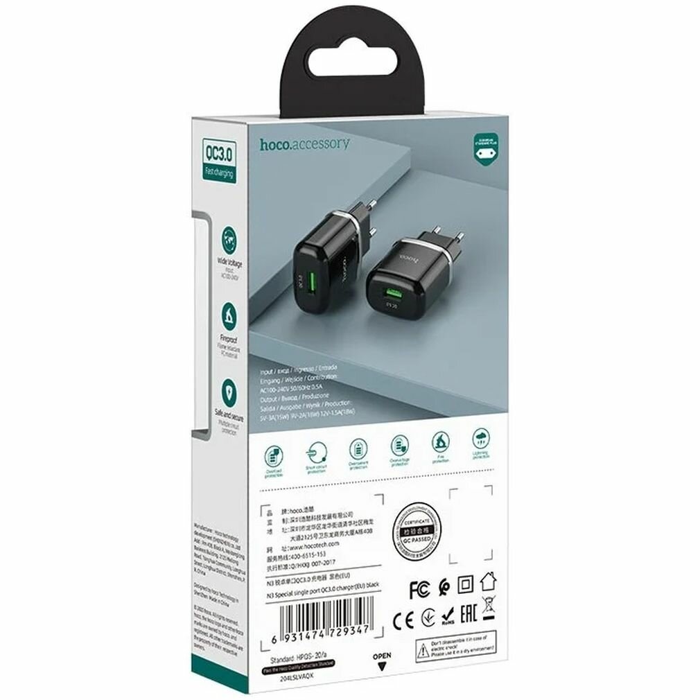 Блок питания (сетевой адаптер) HOCO N3 Special QC3.0, 18W, один порт USB, 5V, 3.0A, черный