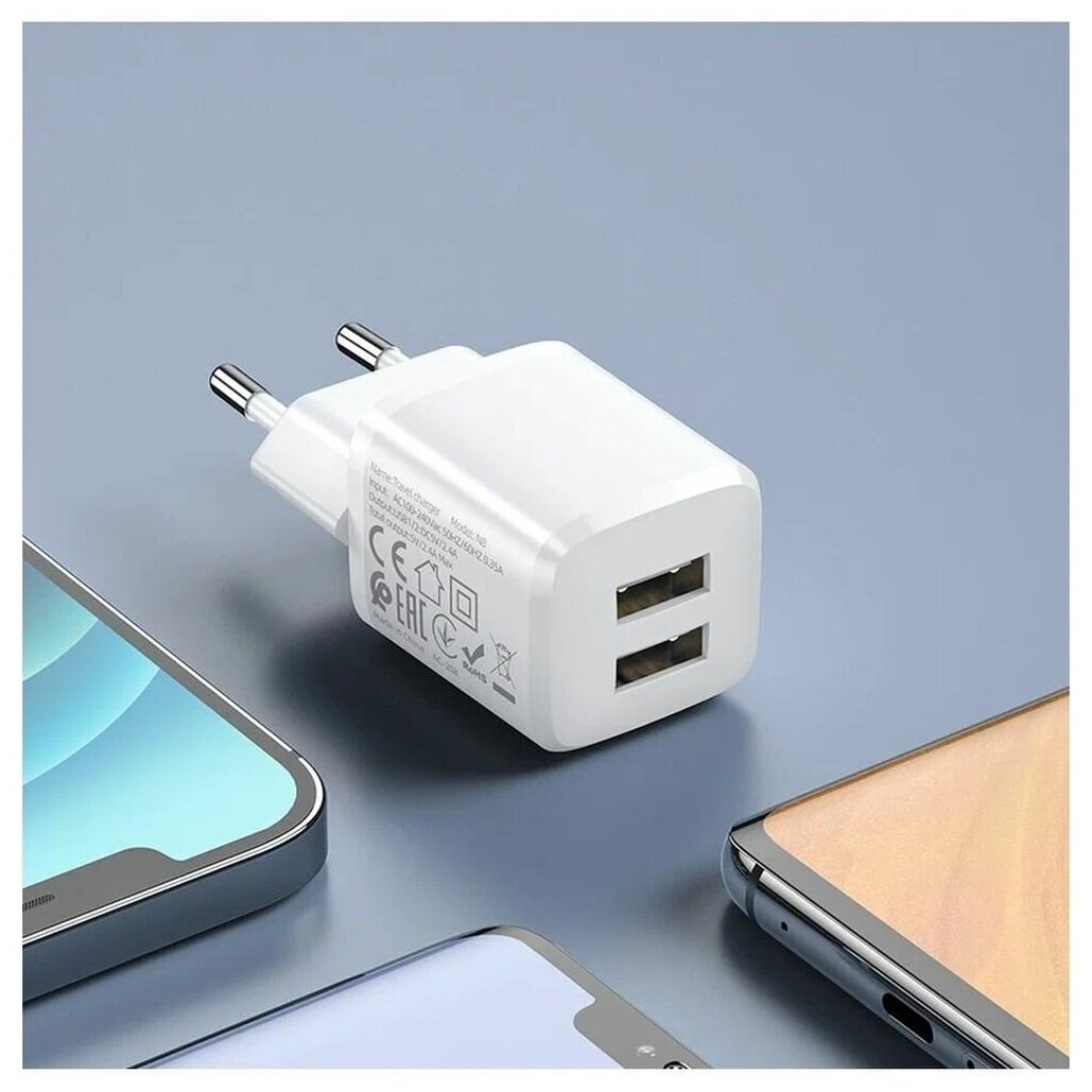 Сетевое зарядное устройство HOCO N8 Briar 2xUSB с Кабелем USB - Lightning, 2.4A, 10.8W, белый