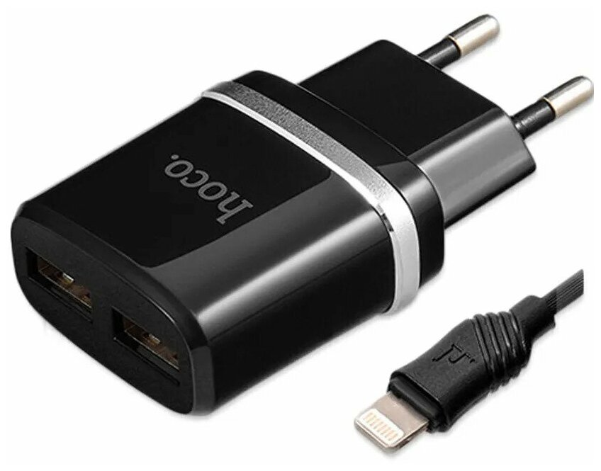 Зарядное устройство для телефона/HOCO C12/2 USB/2.4A/кабель для iphone/Apple/айфон/iPhone Lightning/черный