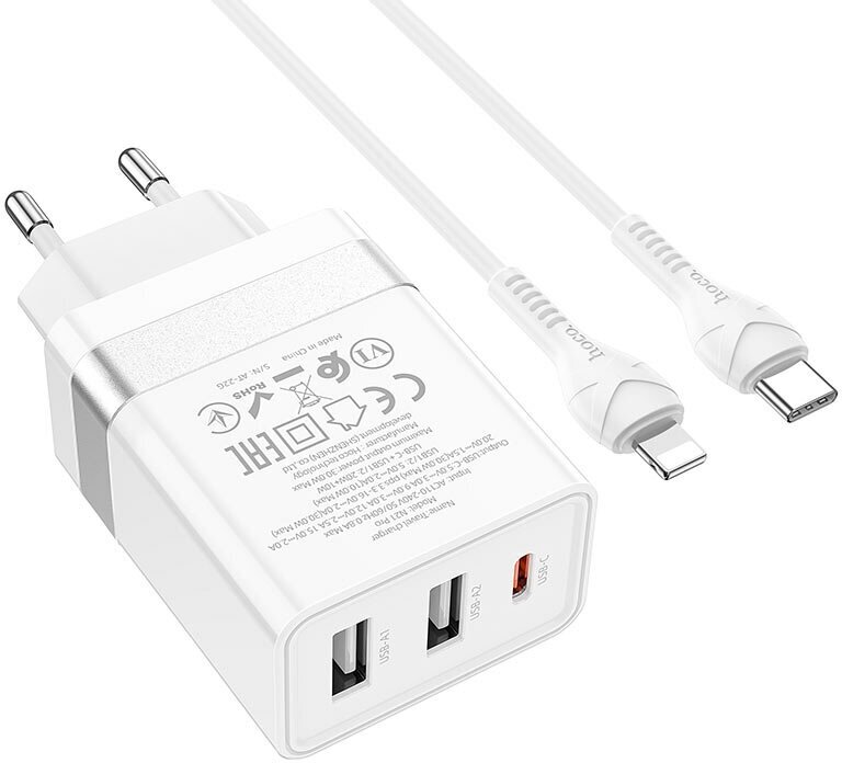 Купить Сетевое зарядное устройство Hoco N21 Pro, 2 USB + Type-C, PD 30W, QC 3.0, белый