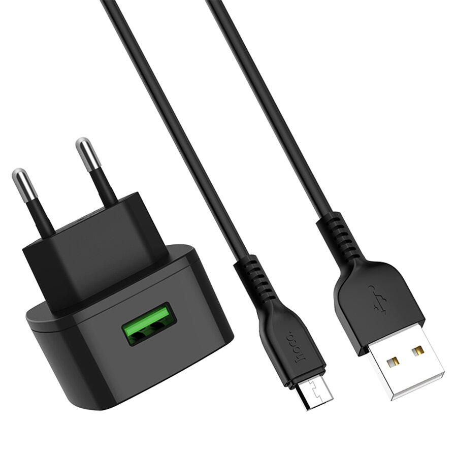 Сетевое зарядное устройство Hoco C70A Cutting-edge, 18W + кабель microUSB, черный