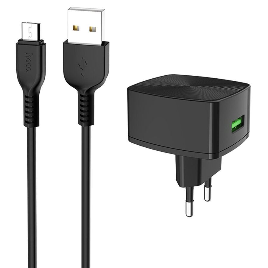 Hoco C70A Cutting-Edge 1xUSB QC3.0 + кабель MicroUSB Black