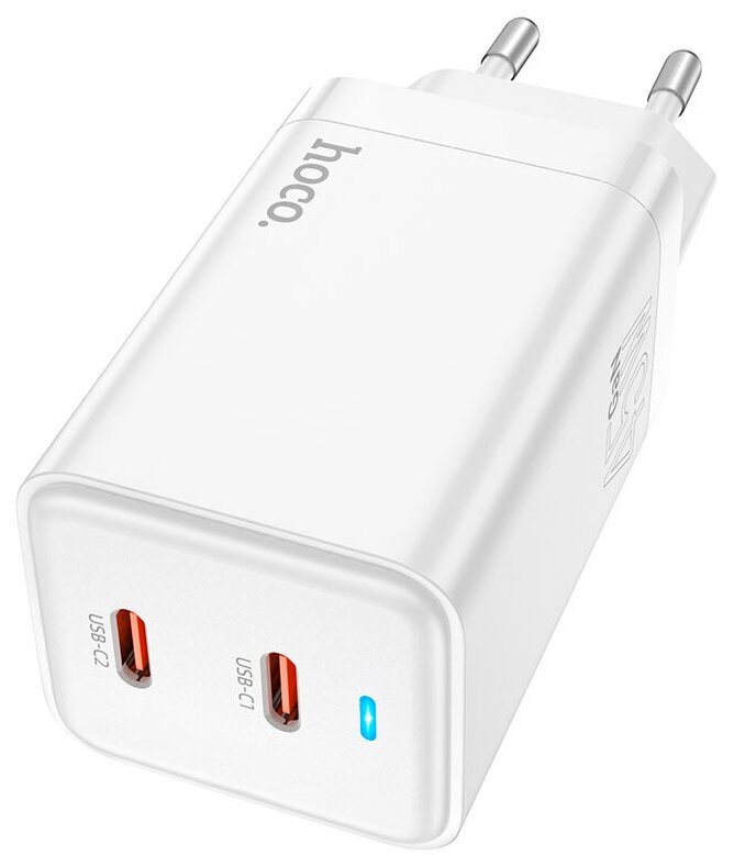 Сетевое зарядное устройство HOCO N23 45W GAN, USB-C*2, PD 45W+QC3.0, Кабель Type-C to Type-C 1m, Белый