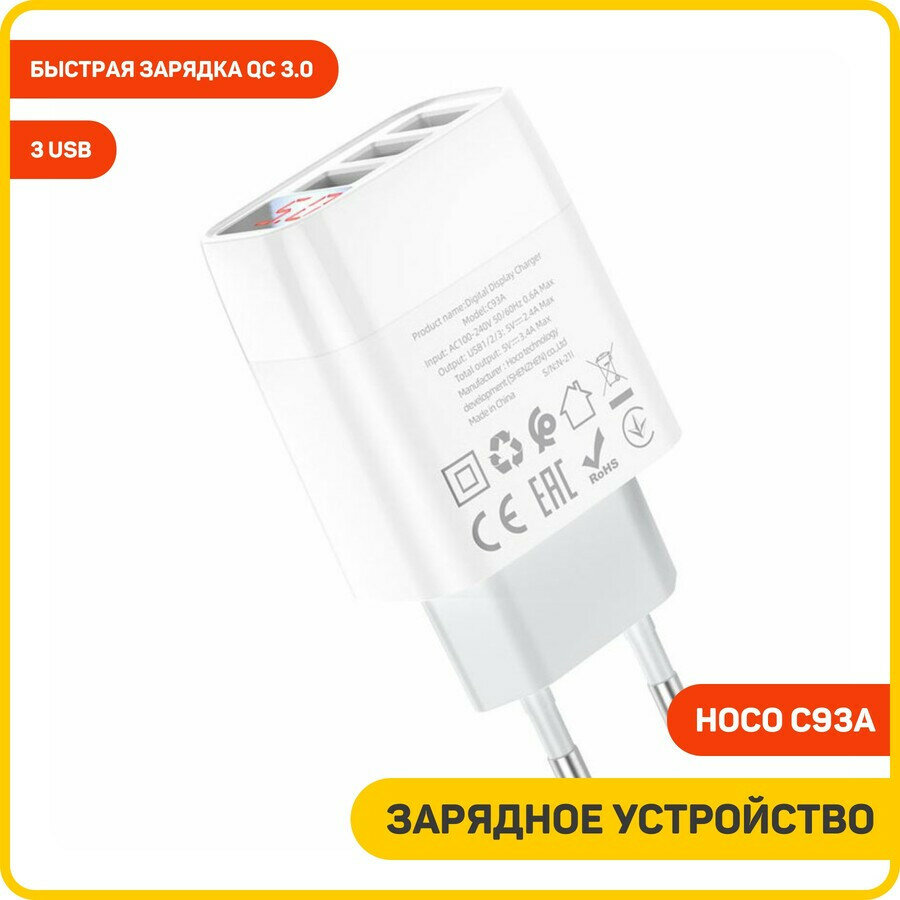 СЗУ, 3 USB 3.4A (C93A), HOCO, белый