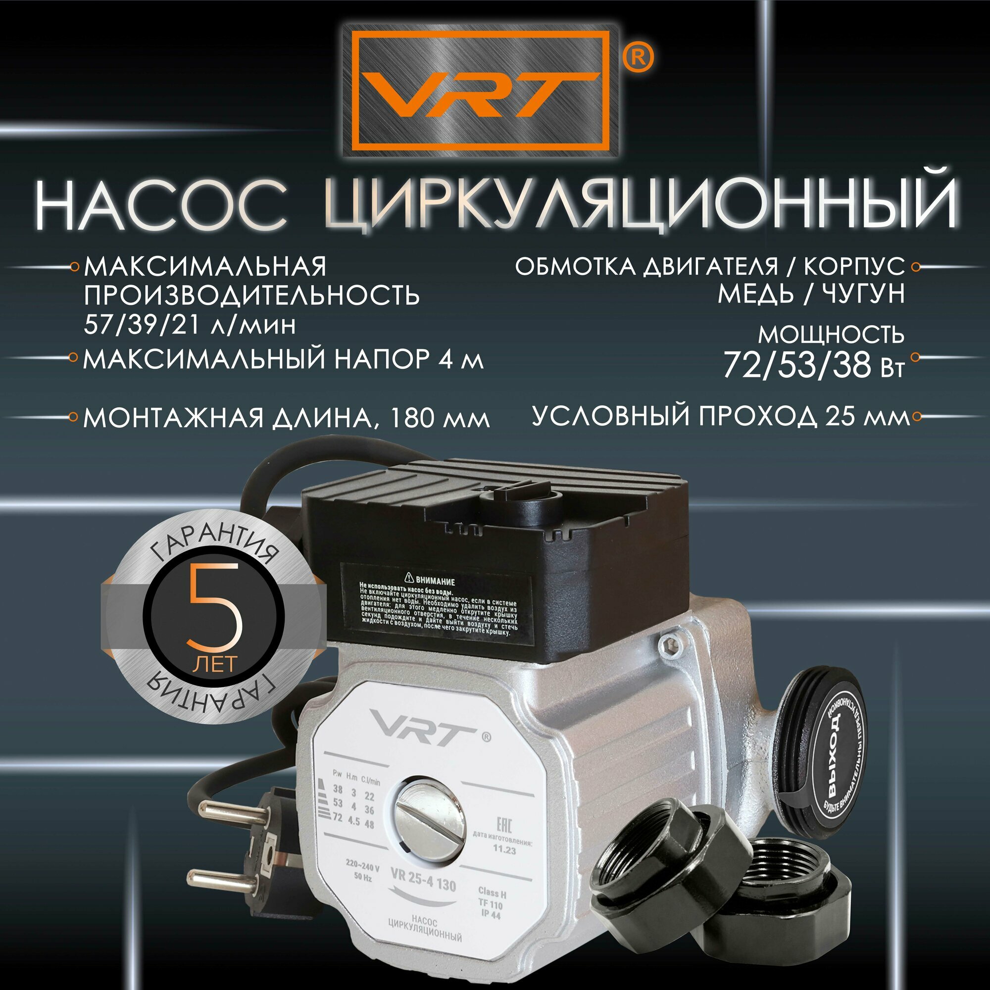 Купить Насос циркуляционный VRT VR 25-4 180, с гайками