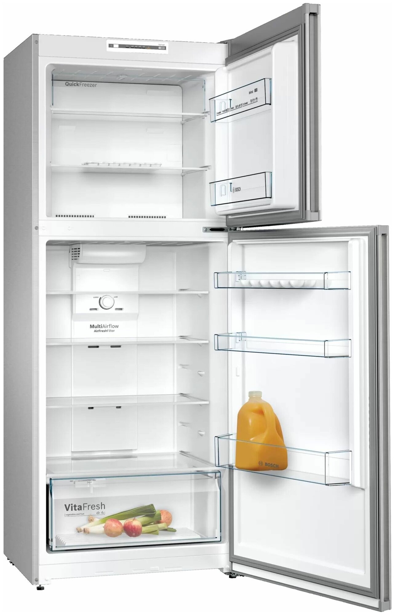 Отдельностоящий холодильник с морозильной камерой сверху Bosch KDN43N120M Series 2, 1780x700x645, 252/113 л, 42 дБ, NoFrost, Vita Fresh, MultiAirFlow интересное: