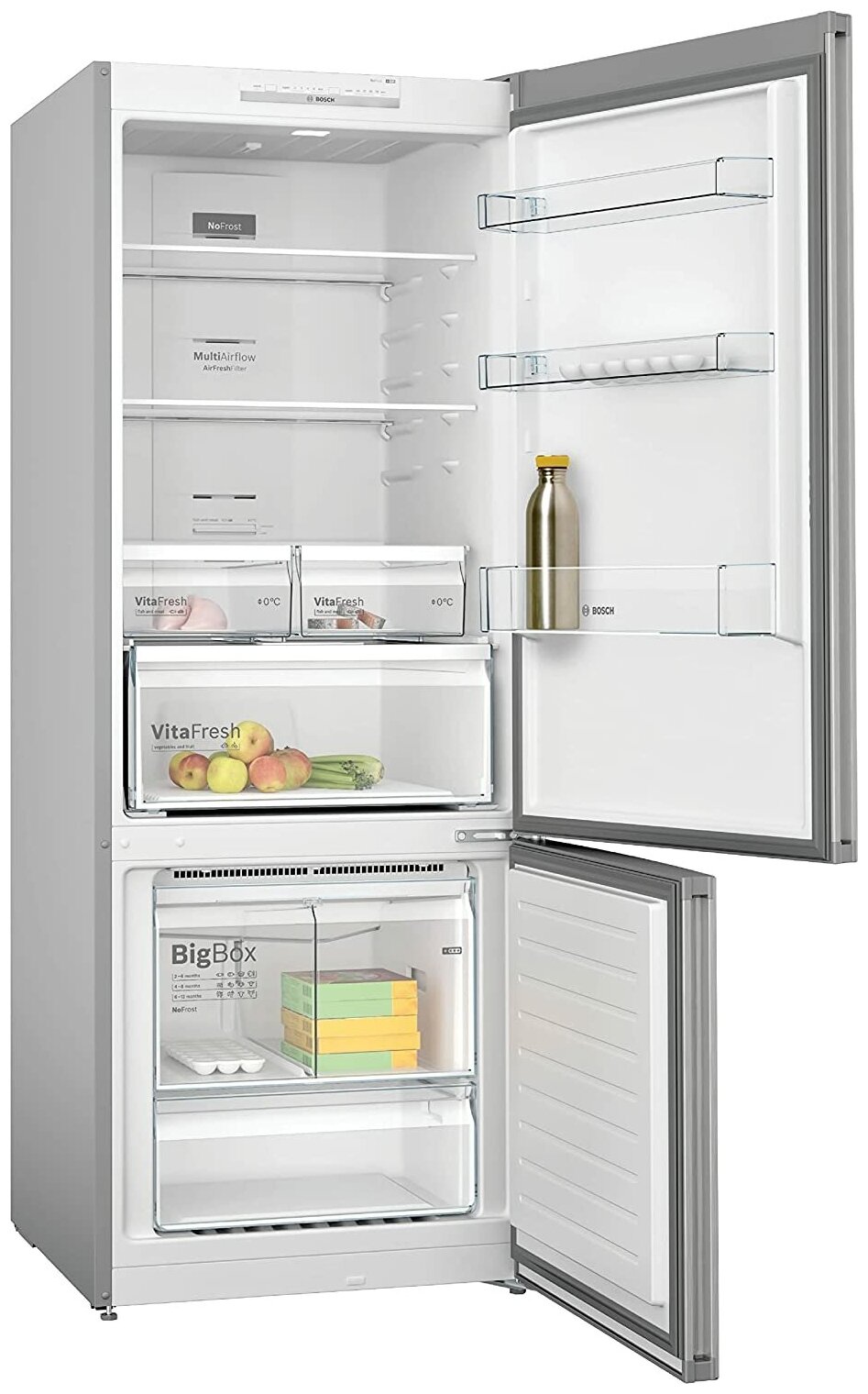Купить Отдельностоящий холодильник с морозильной камерой снизу Bosch KGN55VL20M Series 4, 1860x700x800, 388/142 л, 40 дБ, NoFrost, SuperCooling/SuperFreezing
