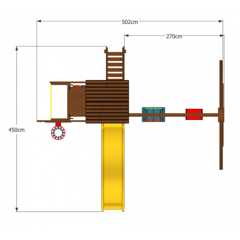 | В комплекте | баскетбольное кольцо, горка, качели, песочница, сетка для лазания, скалолазная стенка, трапеция с кольцами, турник |