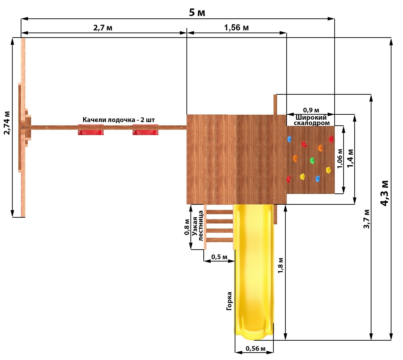 Детский игровой комплекс уличный для дачи с горкой, качелями, скалодромом СГ5-Р912