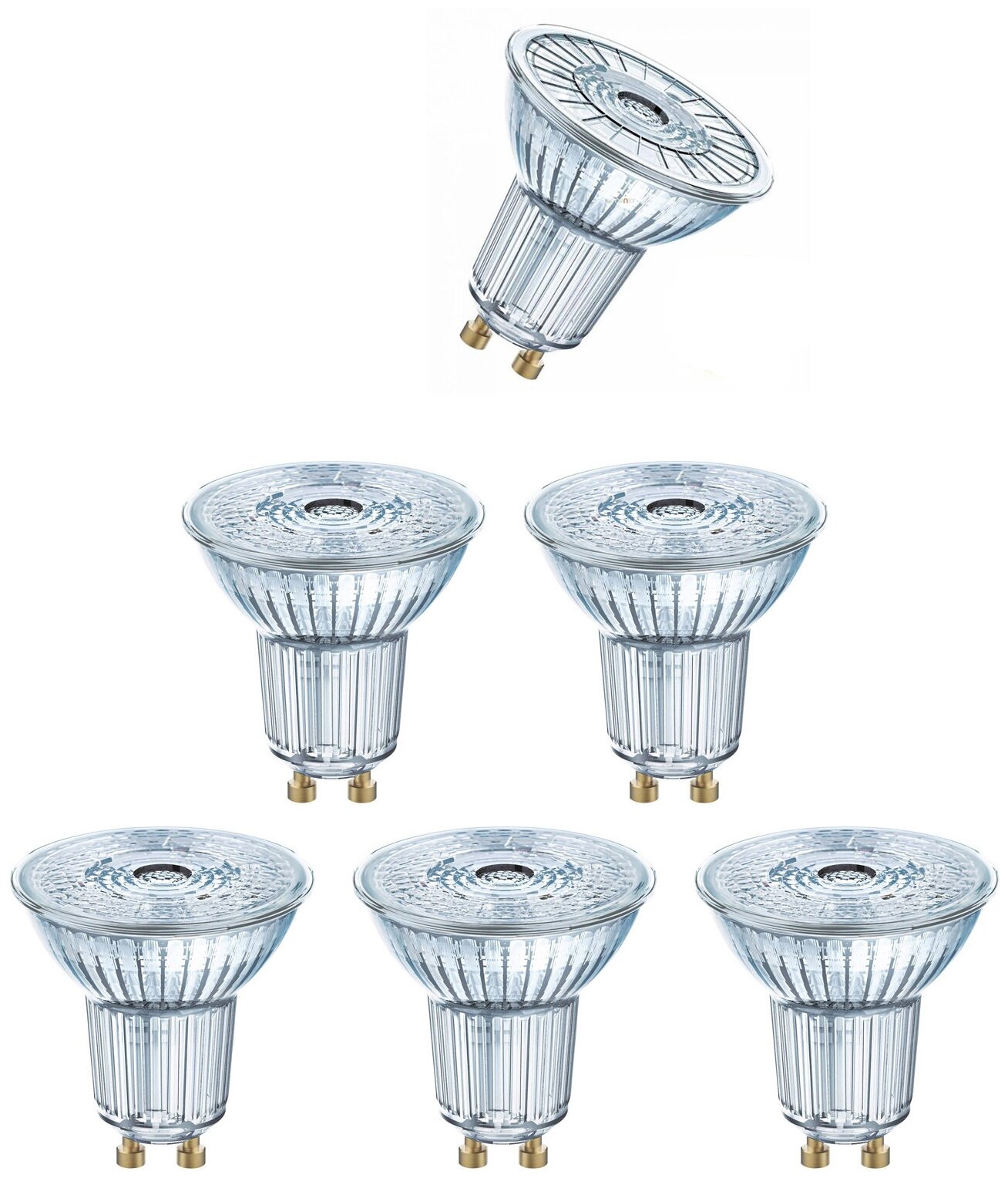 Купить Лампочка светодиодная OSRAM Софит PAR16 GU10 8,3Вт 220В 575Лм 3000К Теплый белый Диммируемая, упаковка 5шт