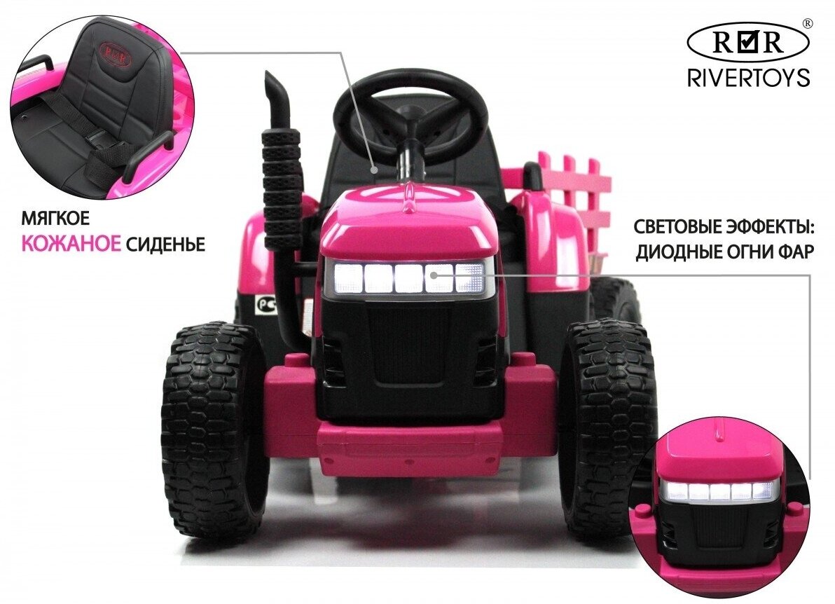 Электромобиль RiverToys Трактор H888HH с прицепом (Розовый)