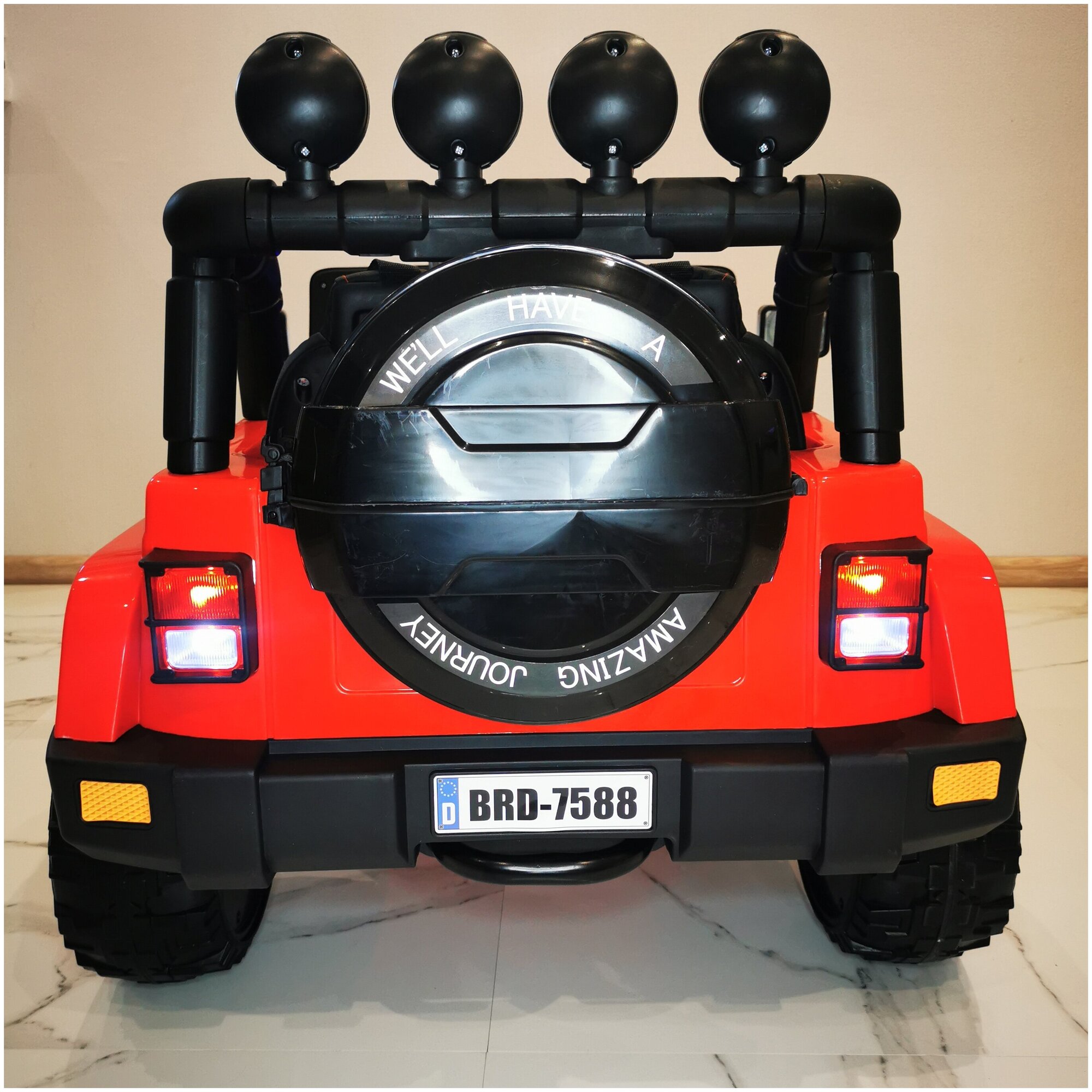 | Комплектация | амортизаторы / боковые зеркала заднего вида / зарядное устройство / кабель AUX / клаксон / ключ зажигания / музыкальные колонки / педаль газа / пульт ДУ / ремни безопасности / ручка для родителей |