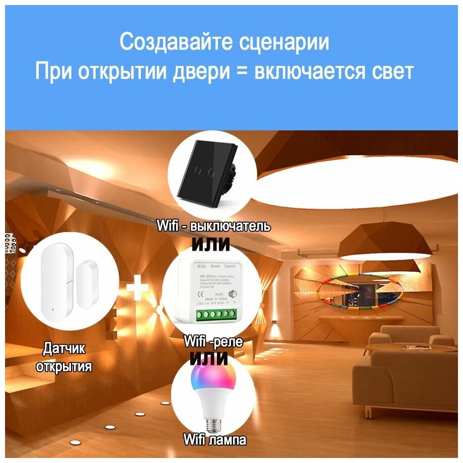 Умный Wi-Fi датчик открытия двери / окна для умного дома Tuya с дистанционным управлением через Интернет интересное: