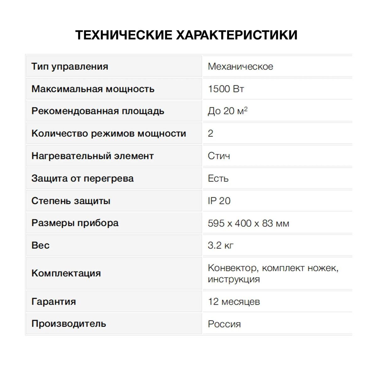 | Тип обогревателя | конвектор |