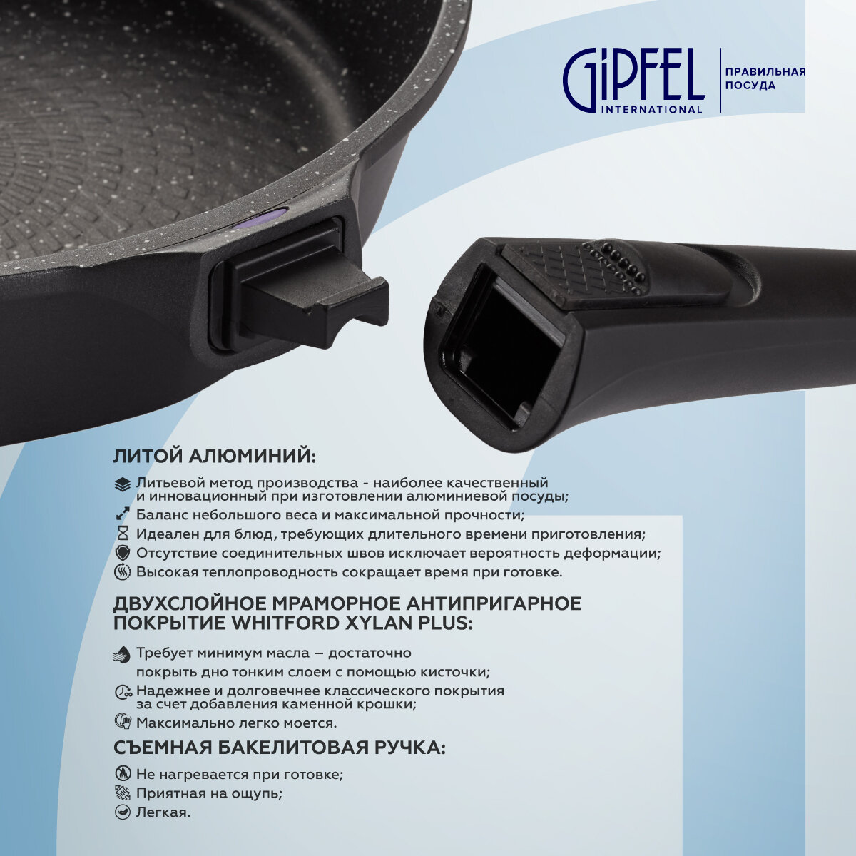 | Плюсы: | Внешний вид, антипригарность, отсутствие запаха, съёмная ручка |