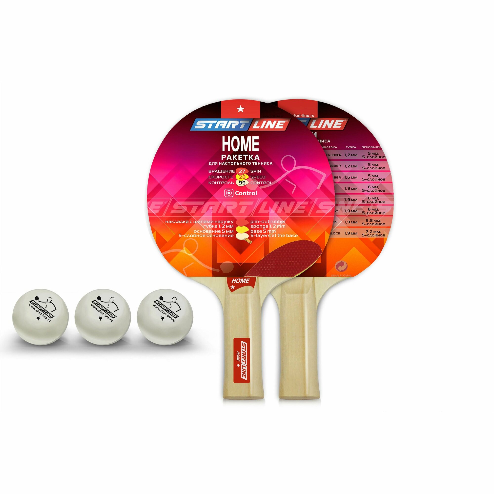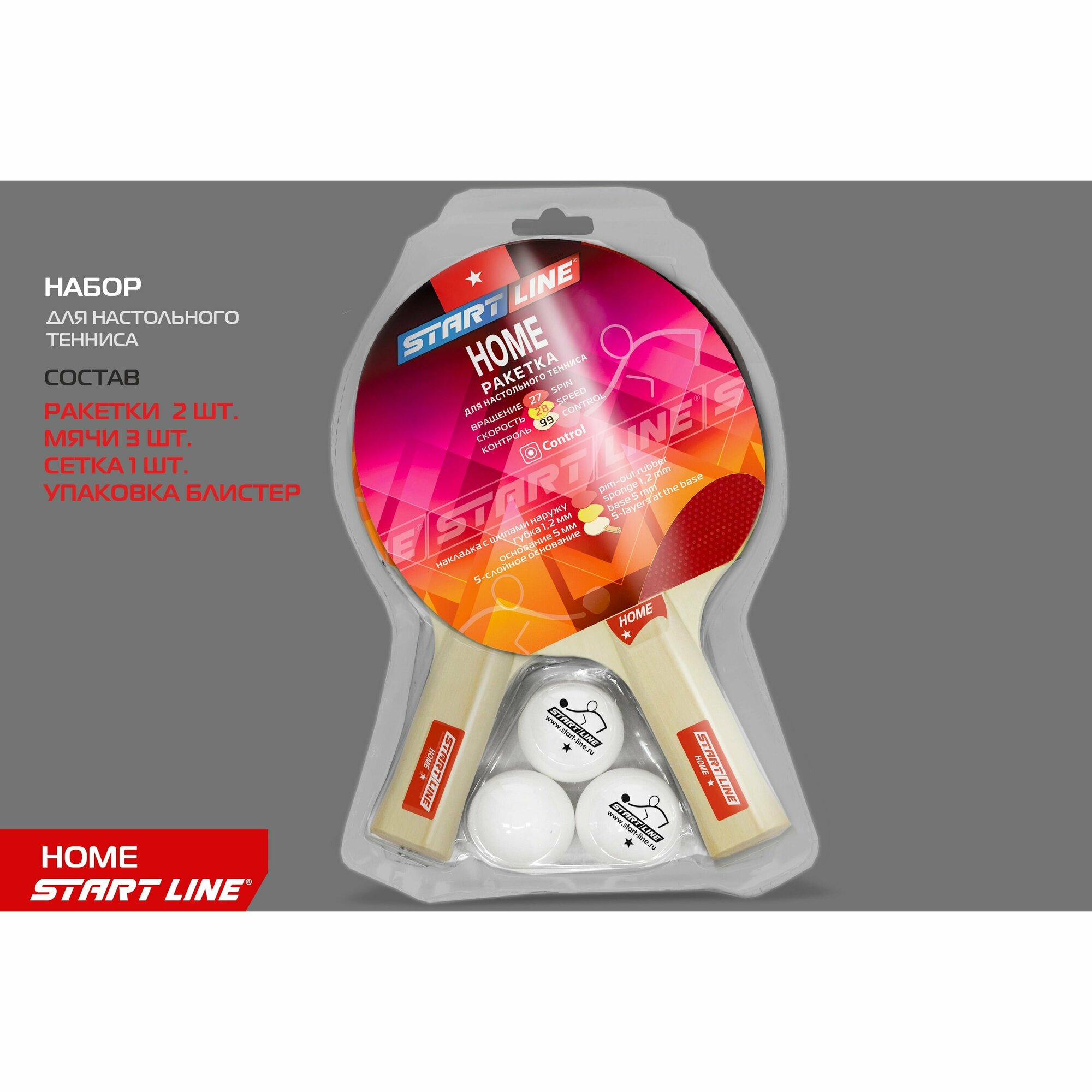 Купить Набор для настольного тенниса START LINE: 2 Ракетки Home 1 звезда, 3 Мяча, сетка с креплением.