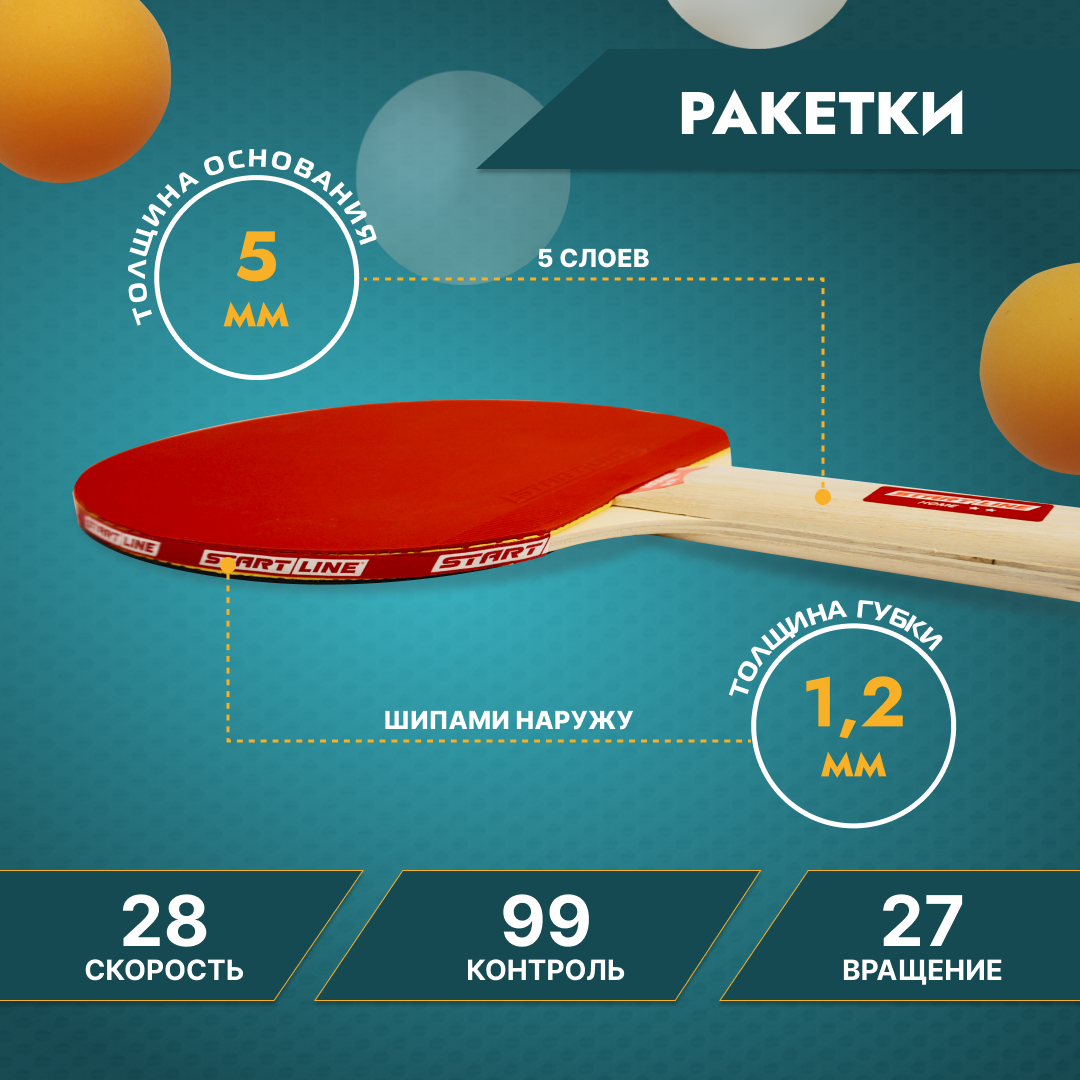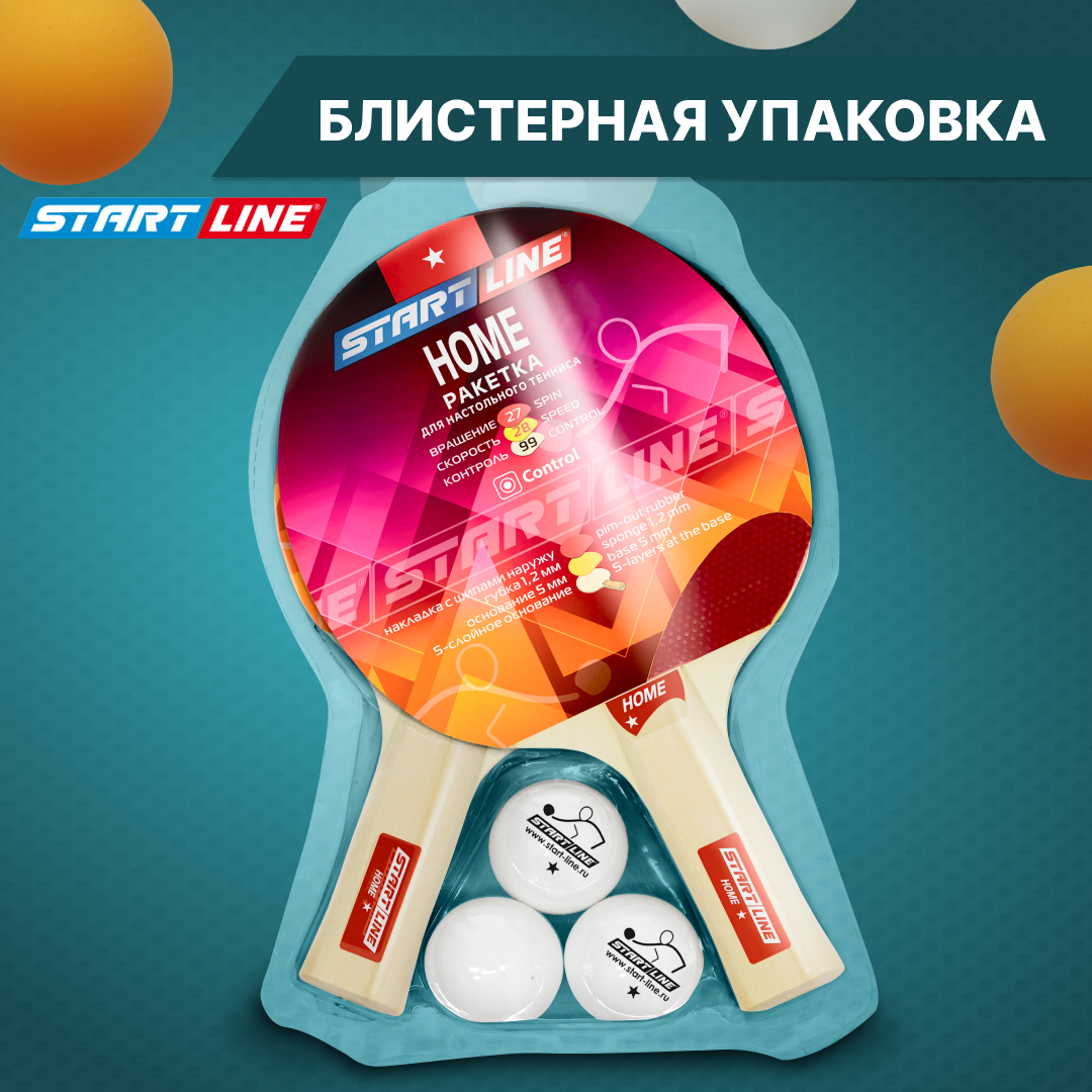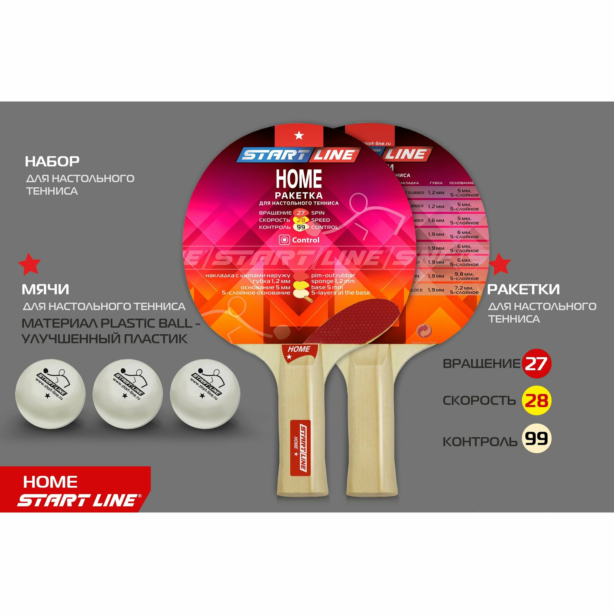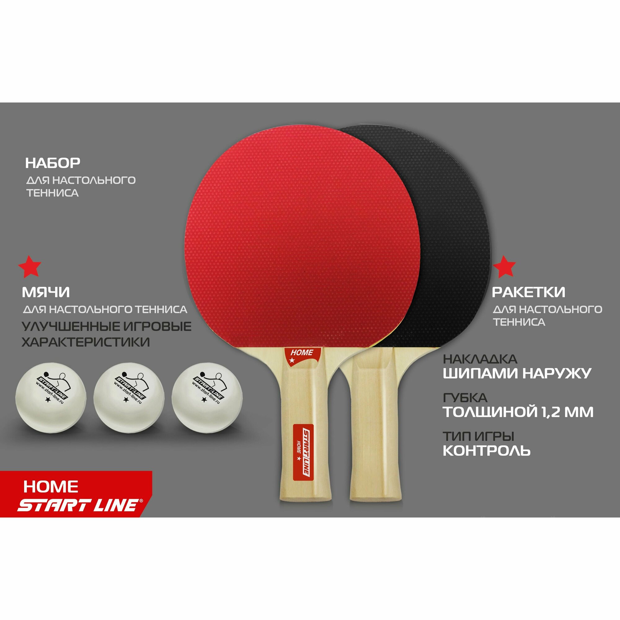 Набор для настольного тенниса START LINE: 2 Ракетки Home 1 звезда, 3 Мяча, сетка с креплением. интересное: