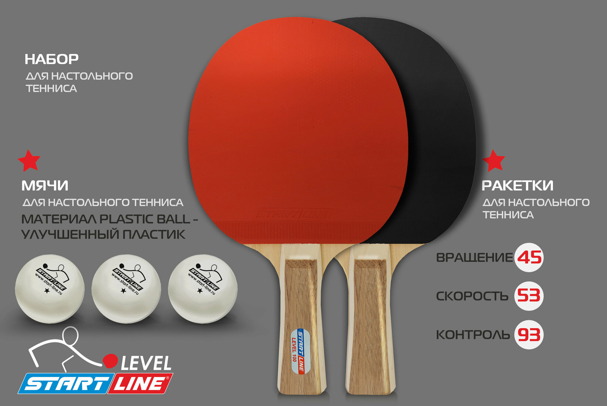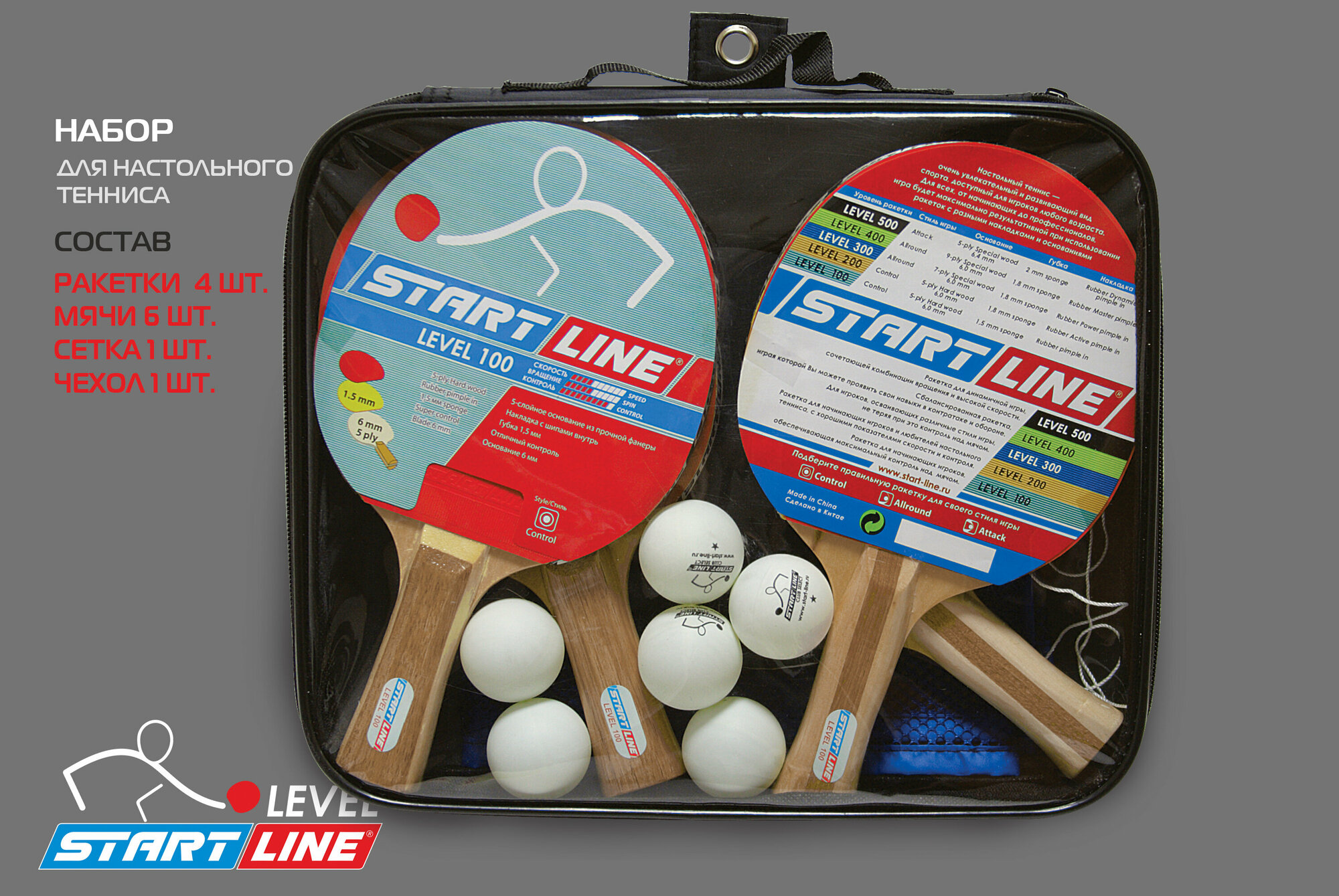 Набор START LINE: 4 Ракетки Level 100, 6 Мячей Club Select, Сетка с креплением, упаковано в сумку на молнии с ручкой интересное: