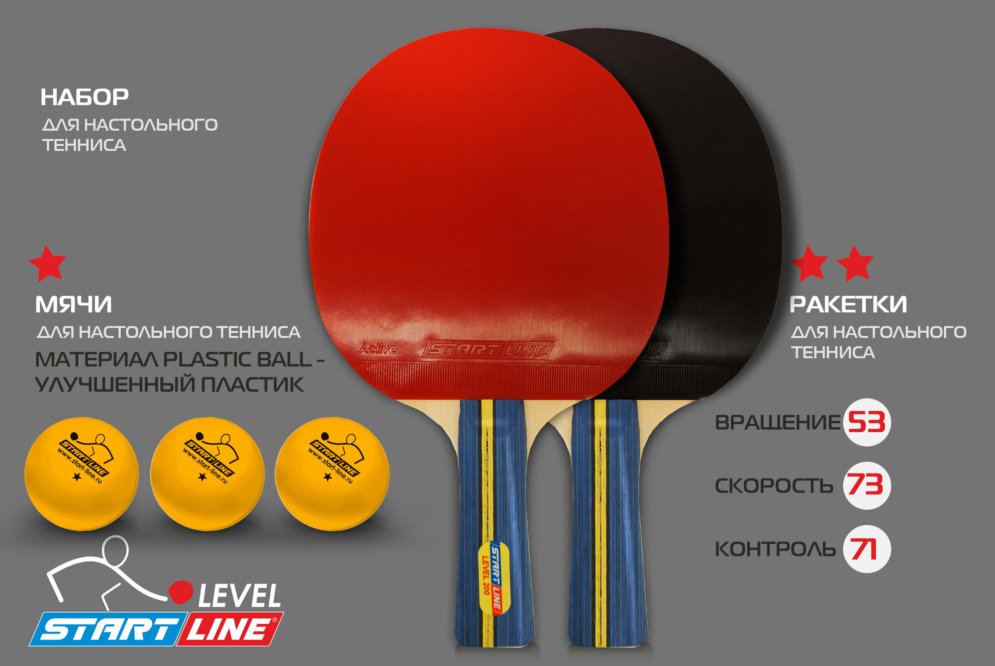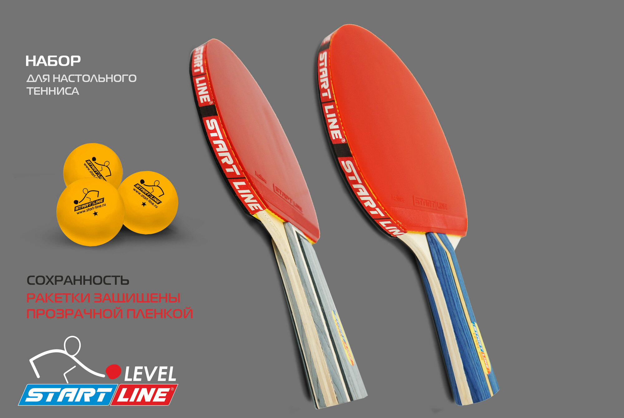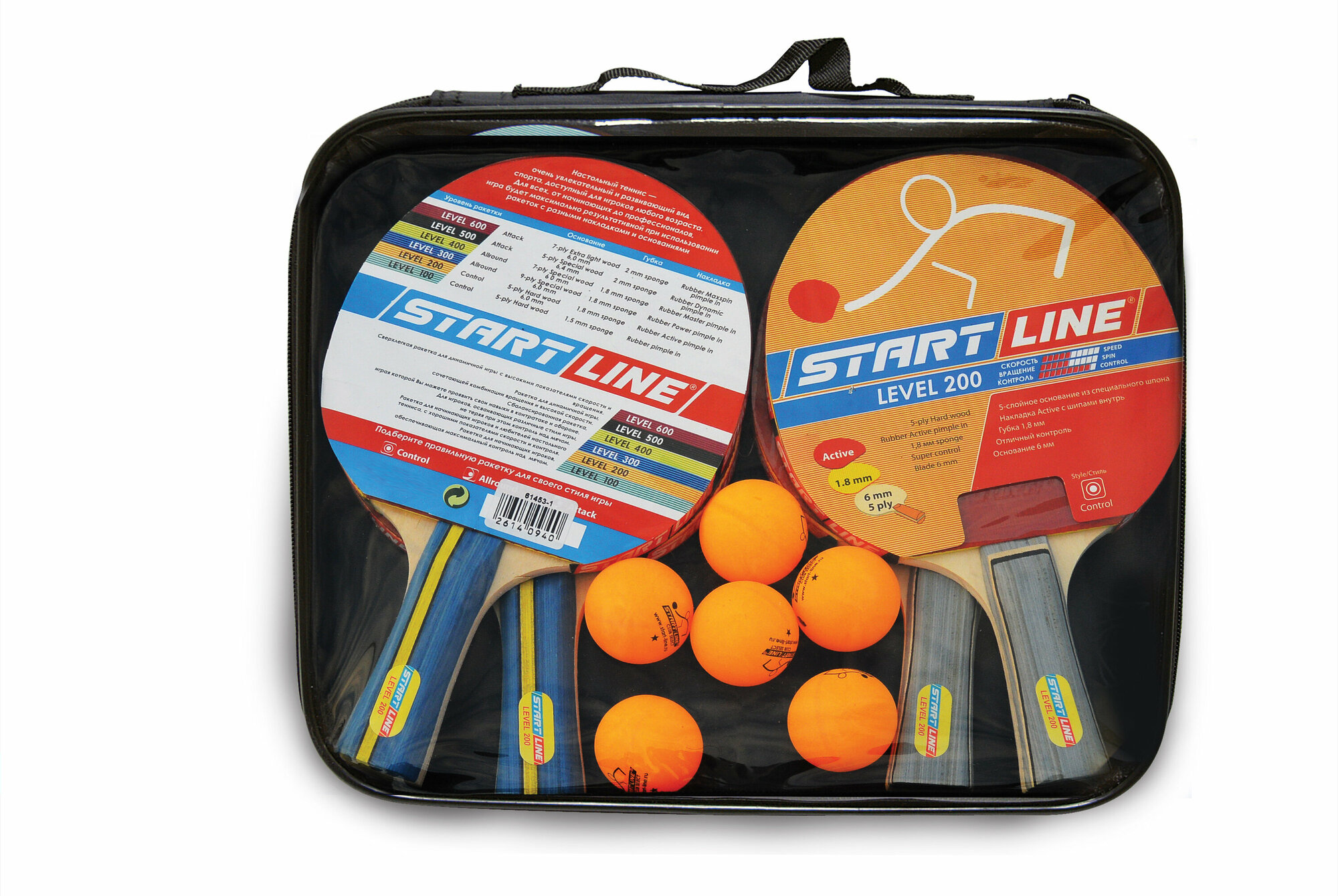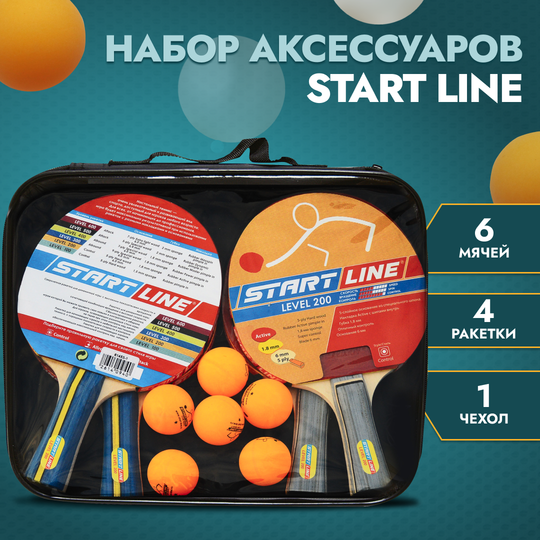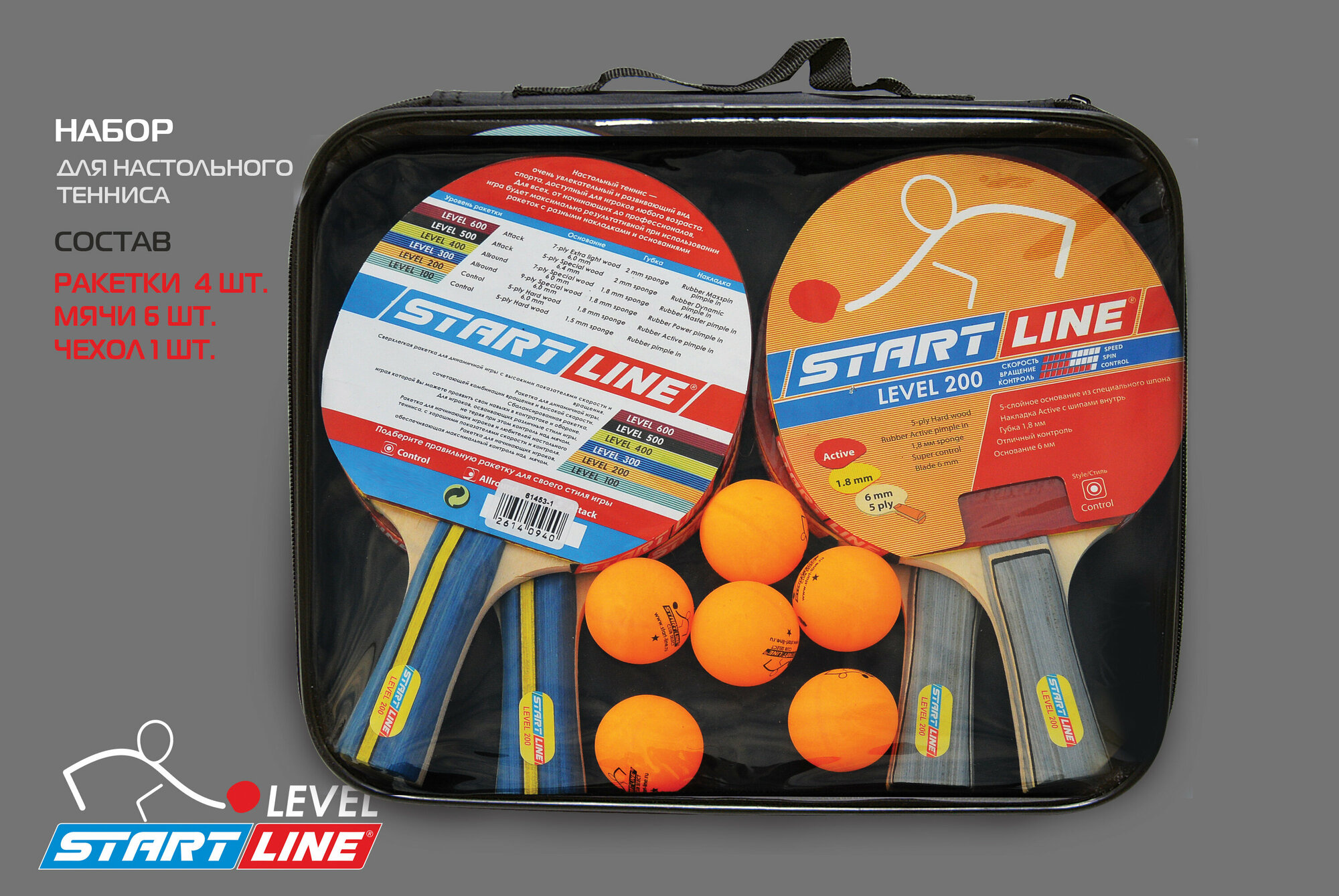 Набор для настольного тенниса START LINE: 4 Ракетки Level 200, 6 Мячей Club Select, упаковано в сумку на молнии с ручкой. интересное: