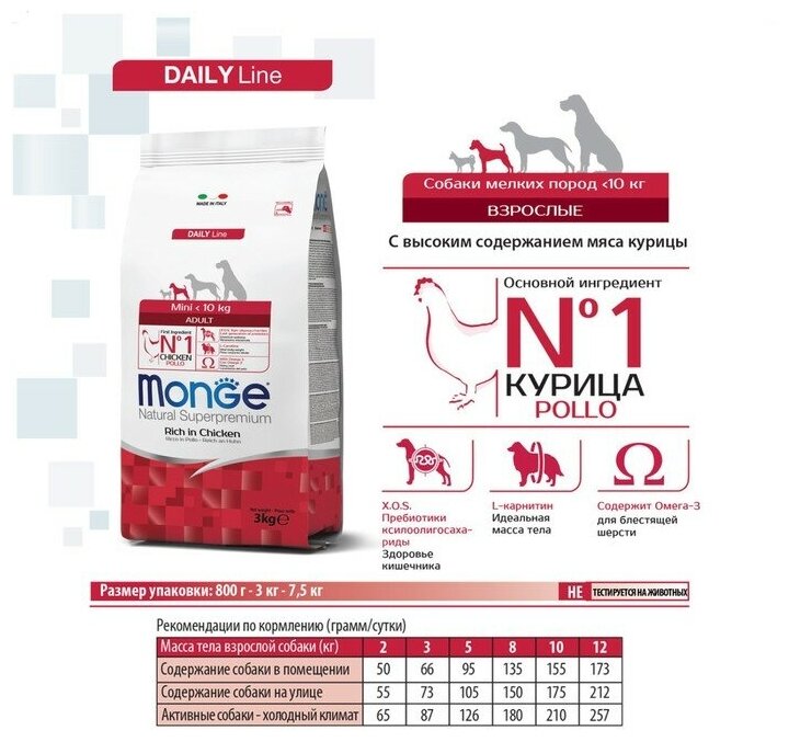 Ниже Вы можете прочитать отзывы на Monge Dog Mini корм для взрослых собак мелких пород 3 кг, ознакомится с подробными характеристиками, посмотреть интересные обзоры и фотографии на Monge Dog Mini корм для взрослых собак мелких пород 3 кг.
