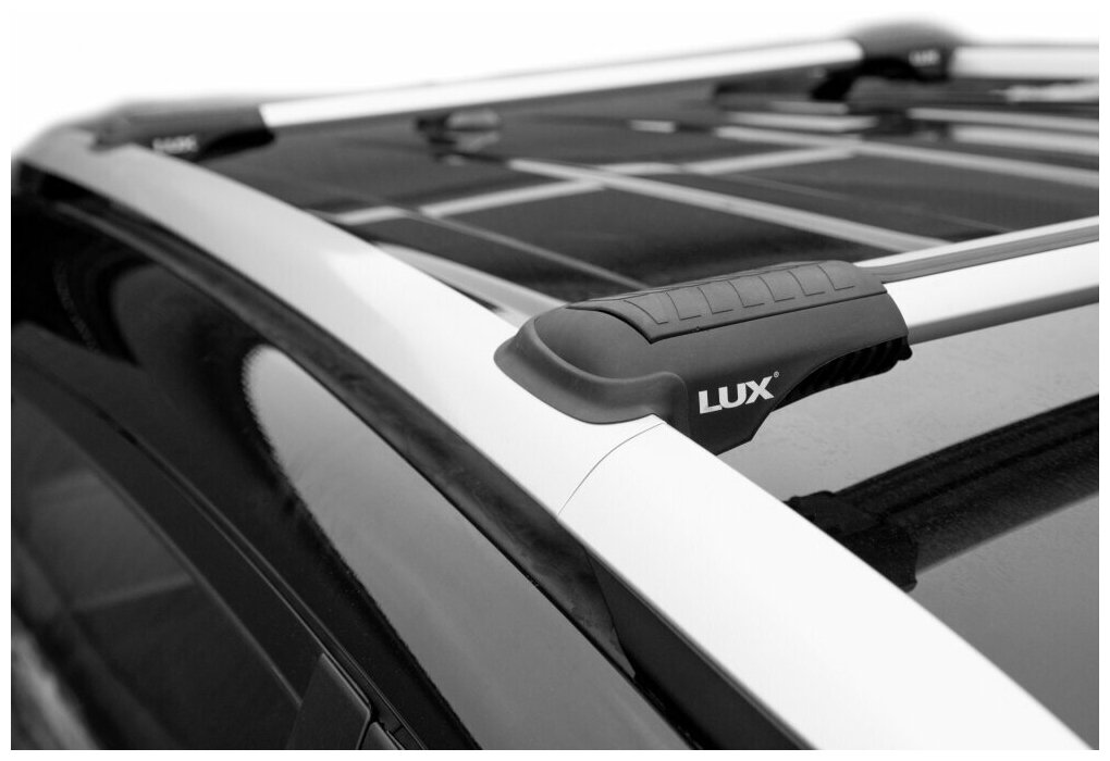 Багажник на рейлинги Мицубиши Паджеро 4 (Mitsubishi Pajero 4, 2006-2021), - Lux Hunter L46-R, серебристые дуги интересное: