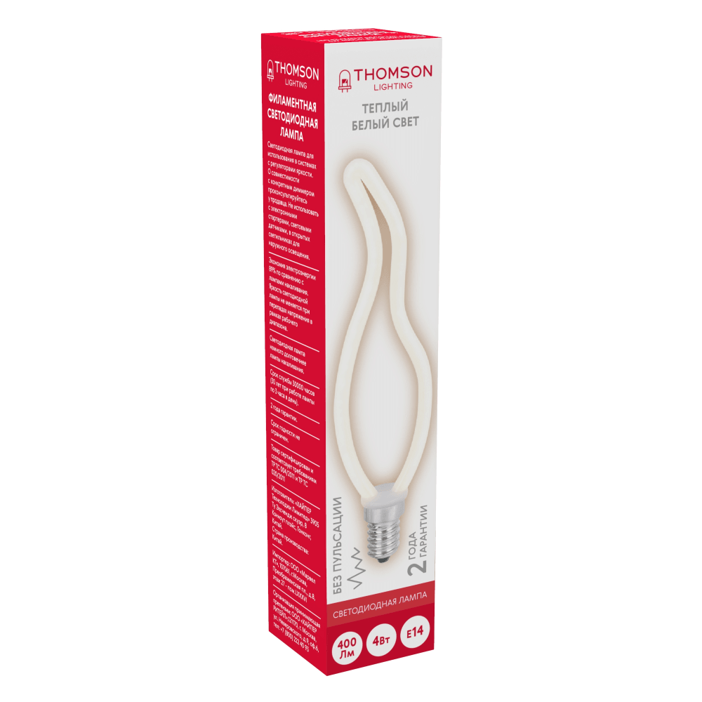 Светодиодная лампа Hiper THOMSON LED FILAMENT DECO TAIL CANDLE 4W 400Lm E14 2700K Frosted интересное: