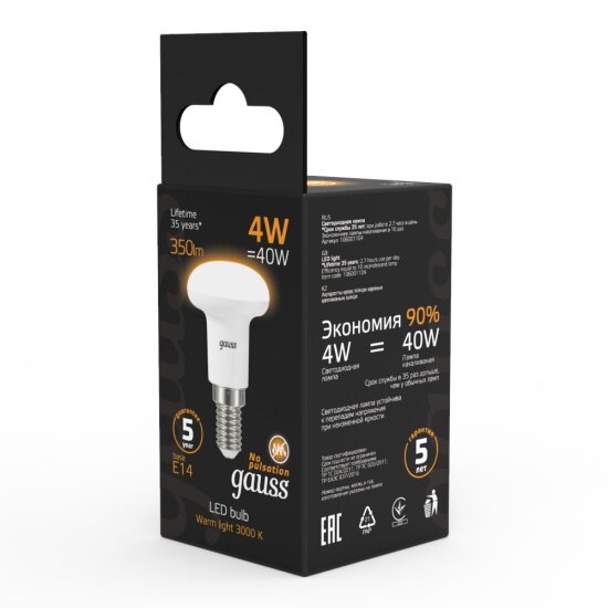 Светодиодная лампа Gauss R39 E14 4W 2700K Frost зеркальная ( упаковка 10шт.) интересное:
