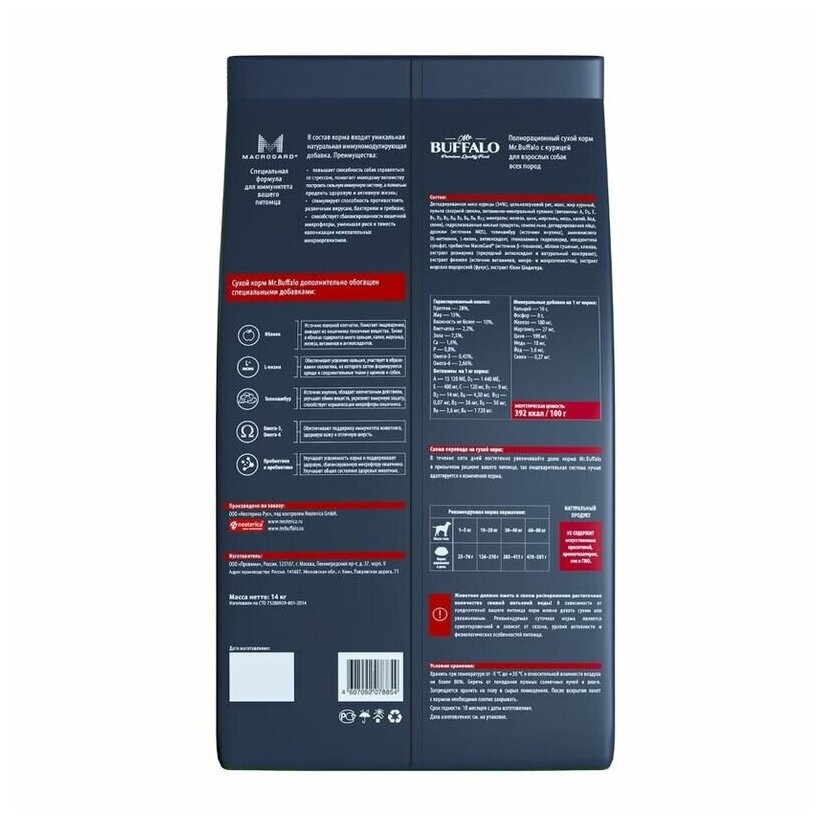 Купить Баффало Mr.Buffalo Adult 14кг с курицей сухой корм д/собак средних и крупных пород (078854)