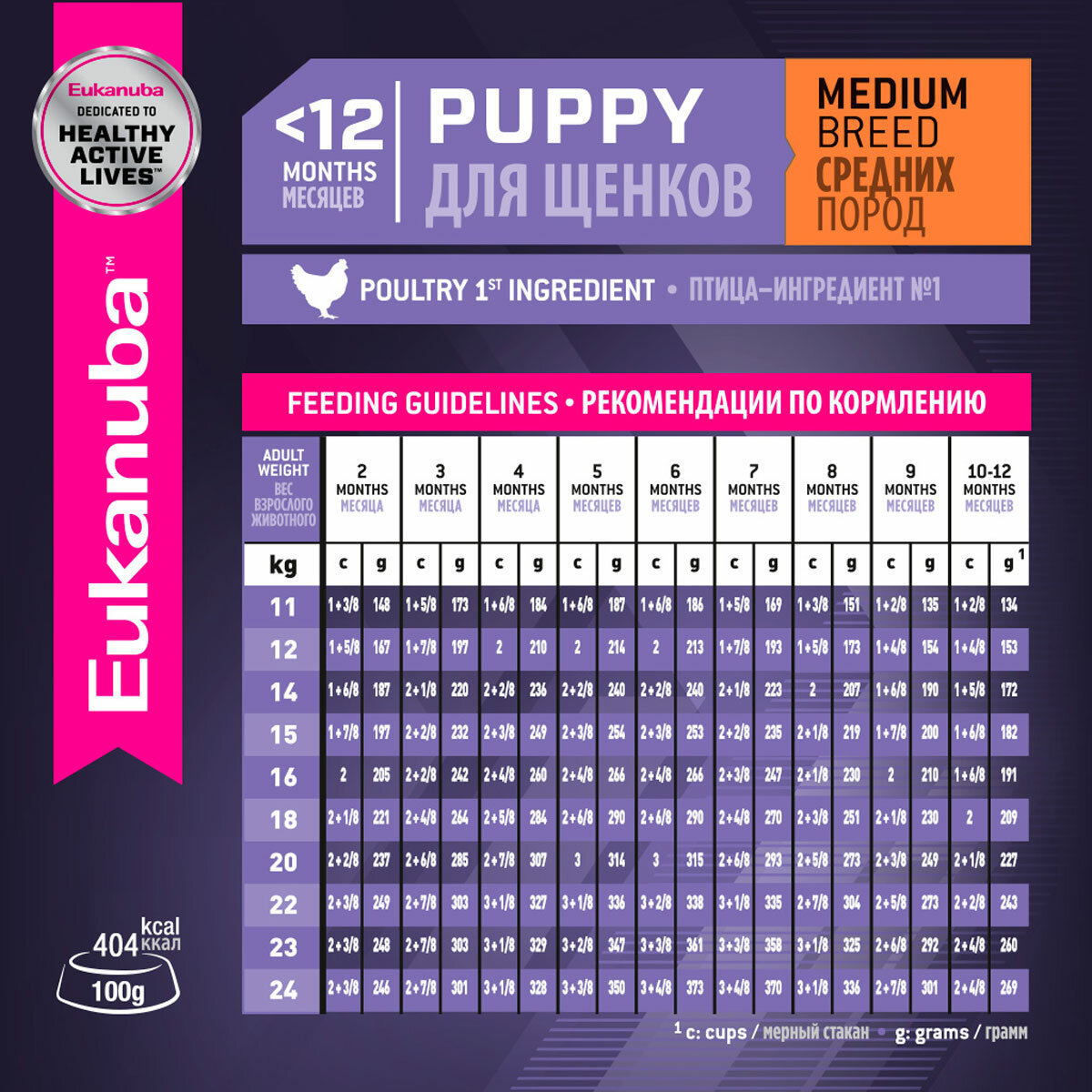 EUKANUBA PUPPY & JUNIOR MEDIUM BREED для щенков средних пород (3 кг)